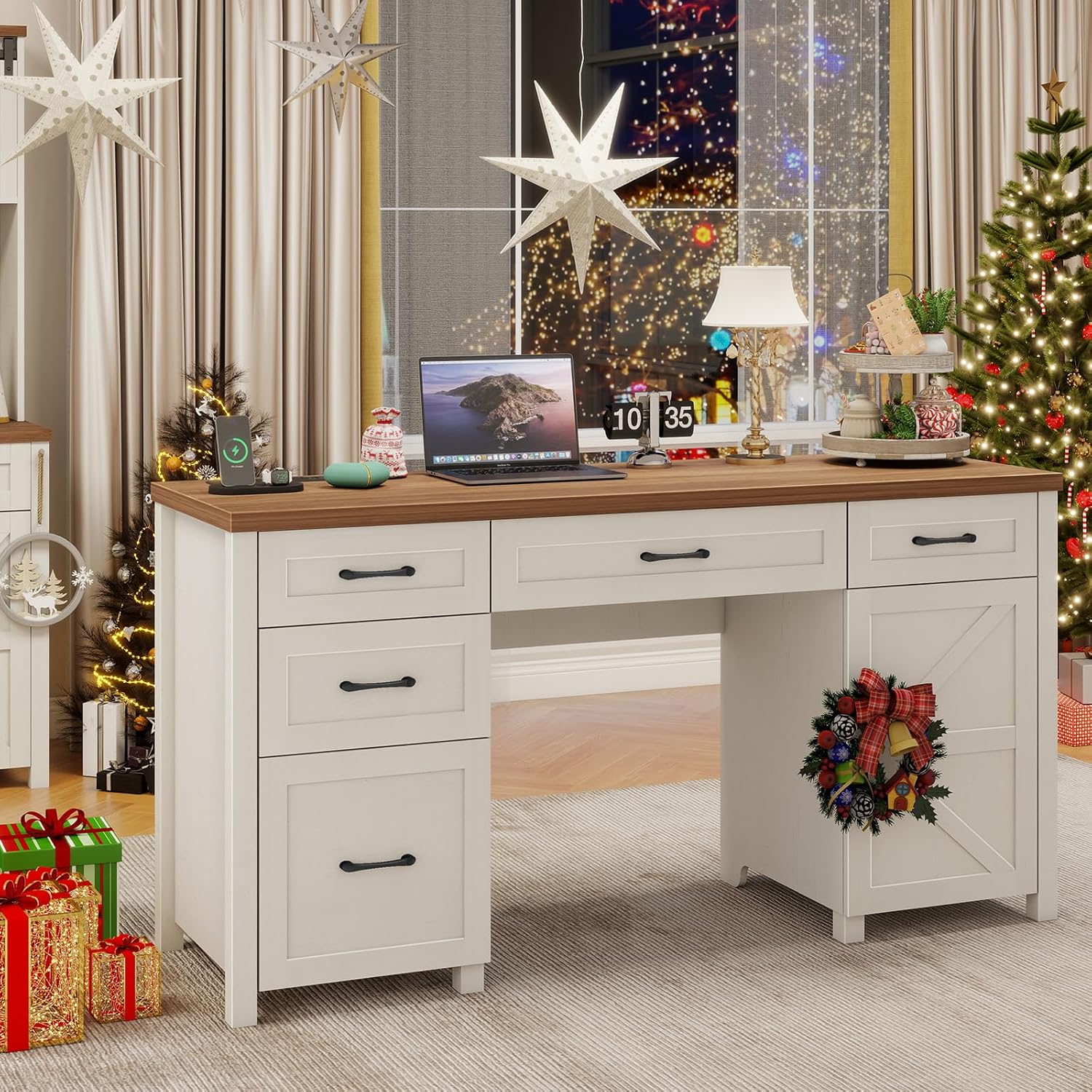 - 【Stylish and Functional Design】More than just a desk, this piece enhances the aesthetic of any room with its farmhouse-inspired design. The large desktop and ample storage make it ideal for professionals, students, and remote workers, combining efficiency and elegance in a single, versatile piece.