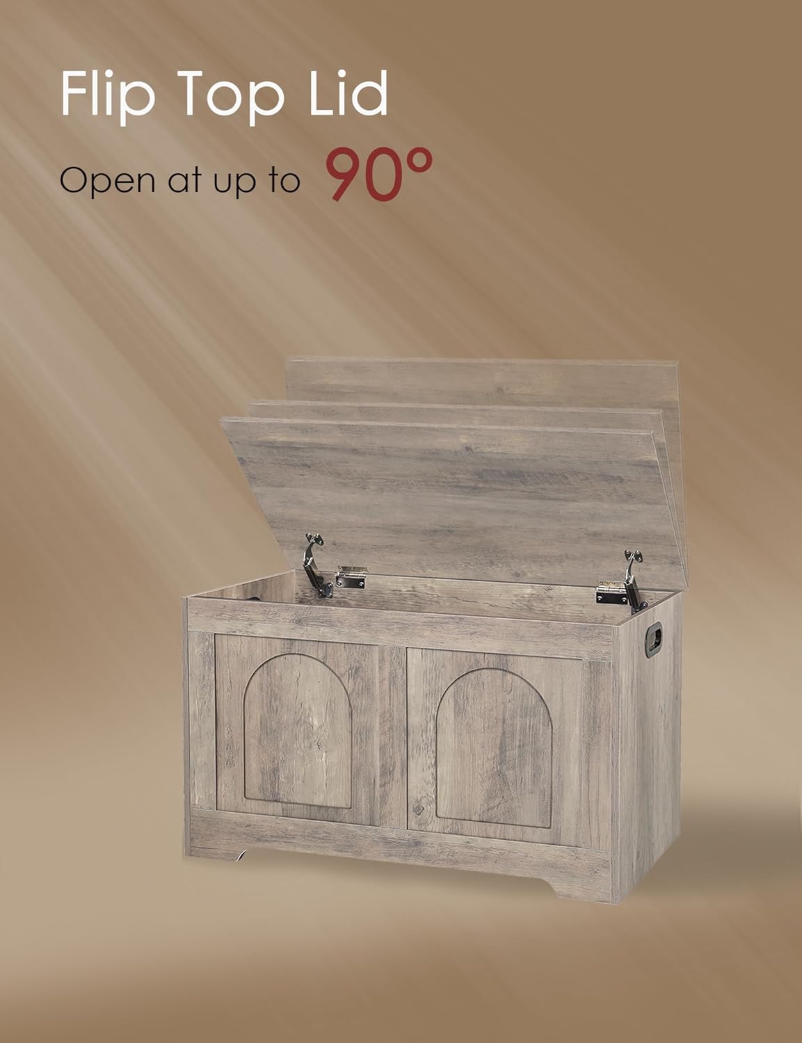 - 【2 Hinges for Added Safety】The sturdy wooden storage chest features 2 safety hinges, holding the lid open and close slowly and smoothly. The lid can stay open at any angle without risk of slamming shut or pinching fingers. 2 cut-out handles allow you to easily move around