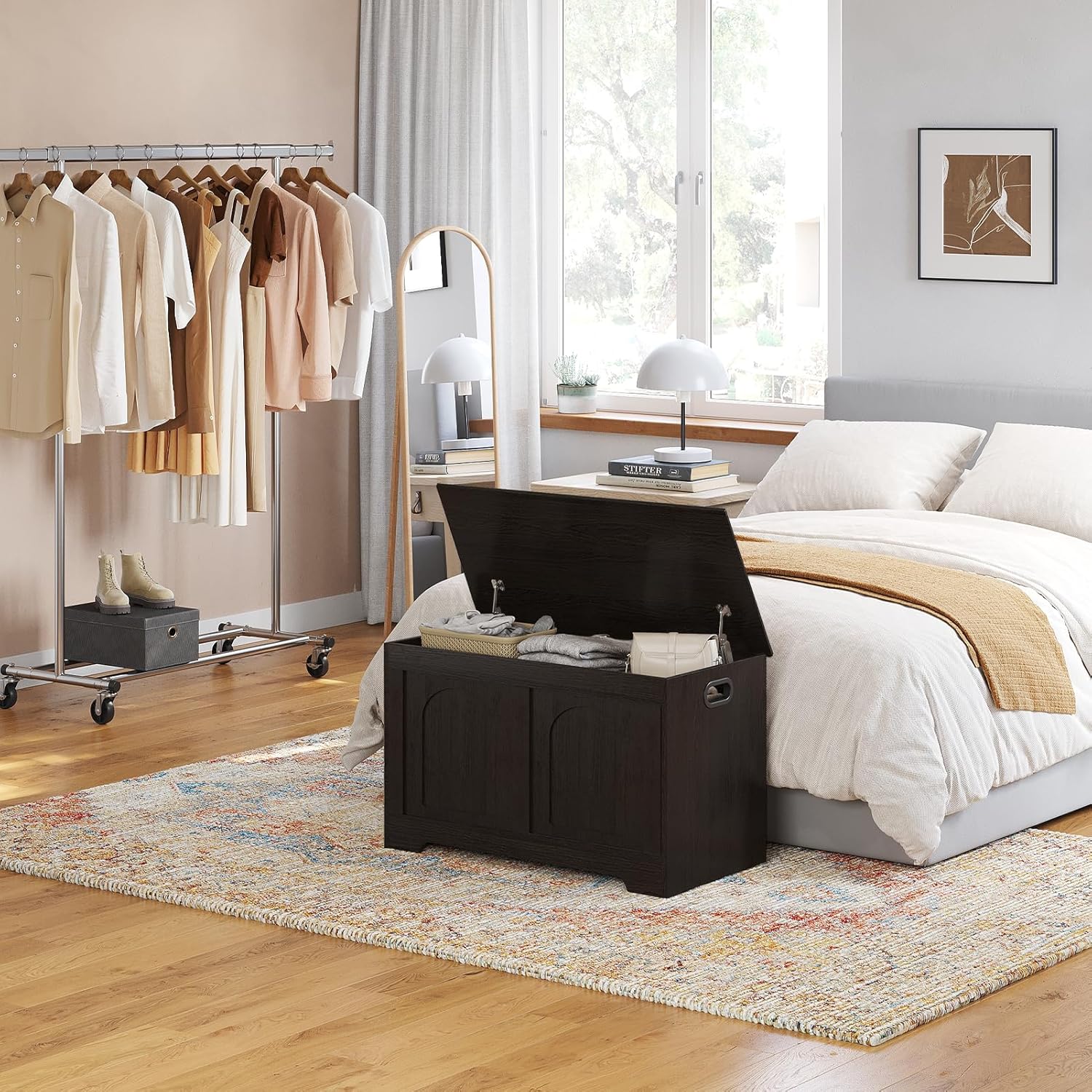 - 【Remarkable Capacity】The large capacity stow away your bulky winter quilts, piles of seasonal clothing, stacks of books, or various household sundries. Away from the hassles of daily storage. keep your living environment neat, organized, and clutter-free. Dimension: 31.5"L x 15.7"W x 18.9"H
