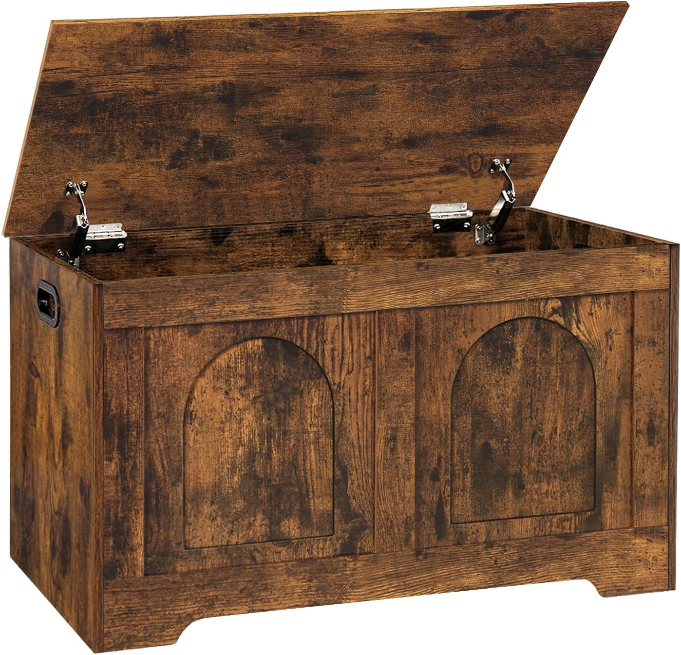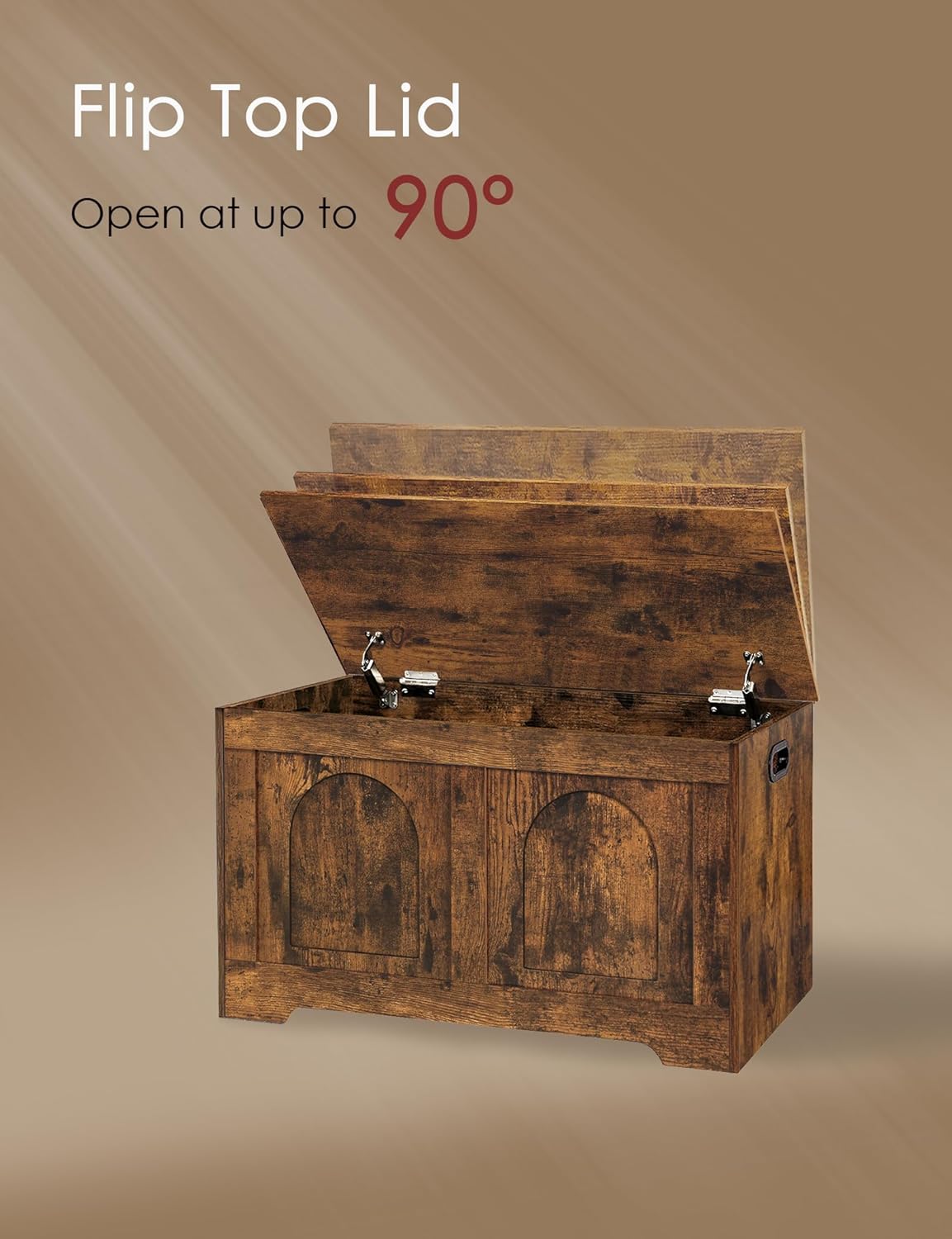 DINZI LVJ Storage Chest, 31.5”Wooden Storage Box with 2 Safety Hinges, Entryway Shoe Bench with Flip-Top, Sturdy Trunk for Living Room, Bedroom, Easy Assembly, Rustic Brown