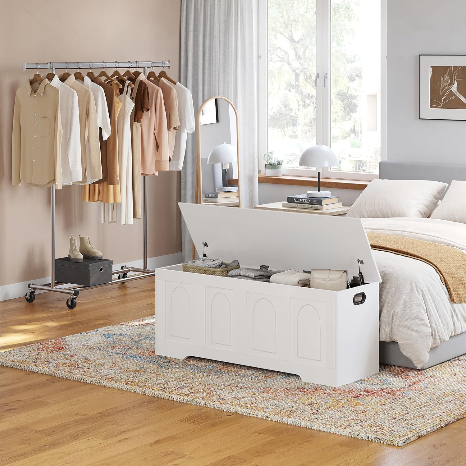 DINZI LVJ Storage Chest, 47.2”Wooden Storage Box with 2 Safety Hinges, Entryway Shoe Bench with Flip-Top, Large Trunk for Living Room, Bedroom, Easy Assembly, White