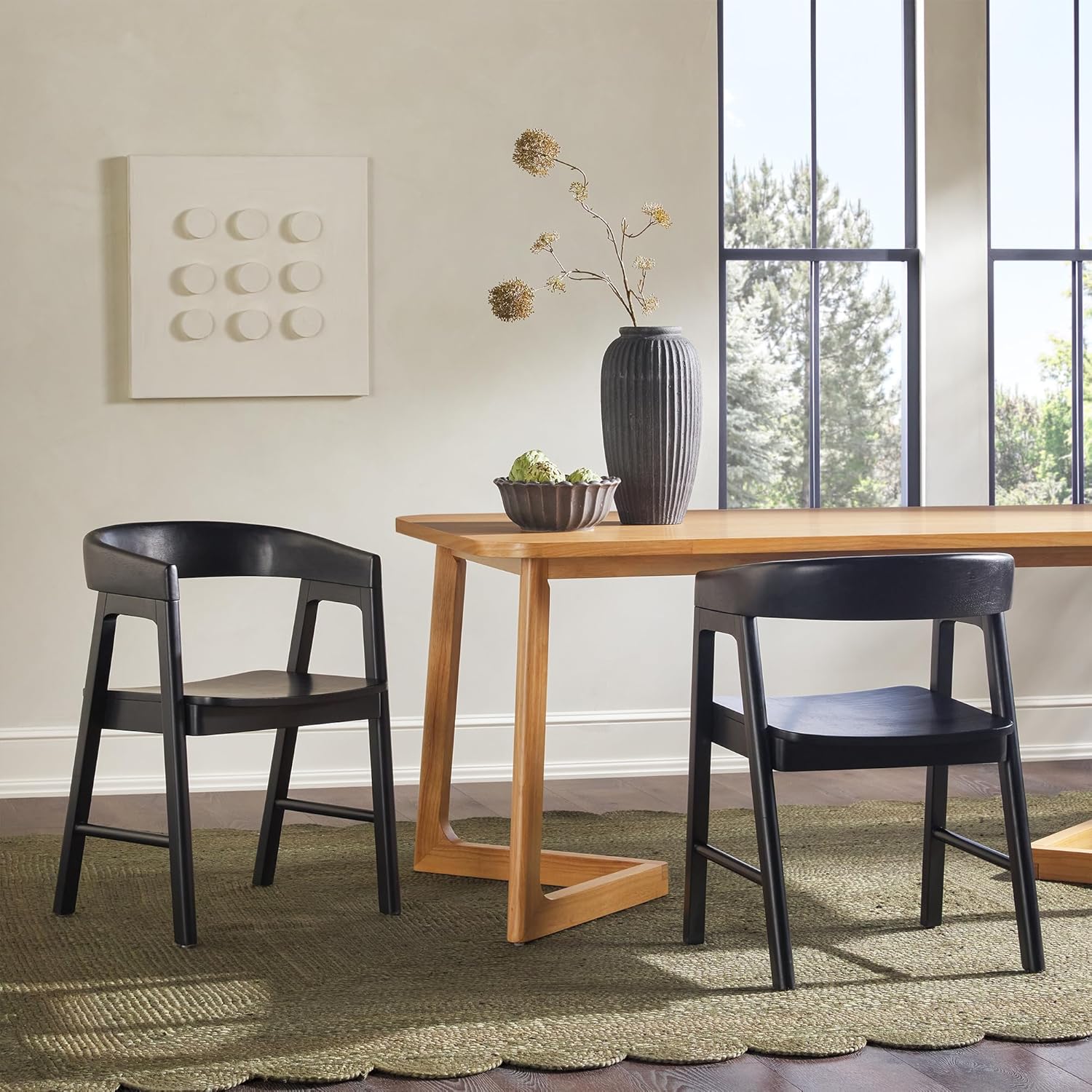 Walker Edison Ezra Modern Solid Wood Rounded Back Dining Chair - Black (Set of 2)