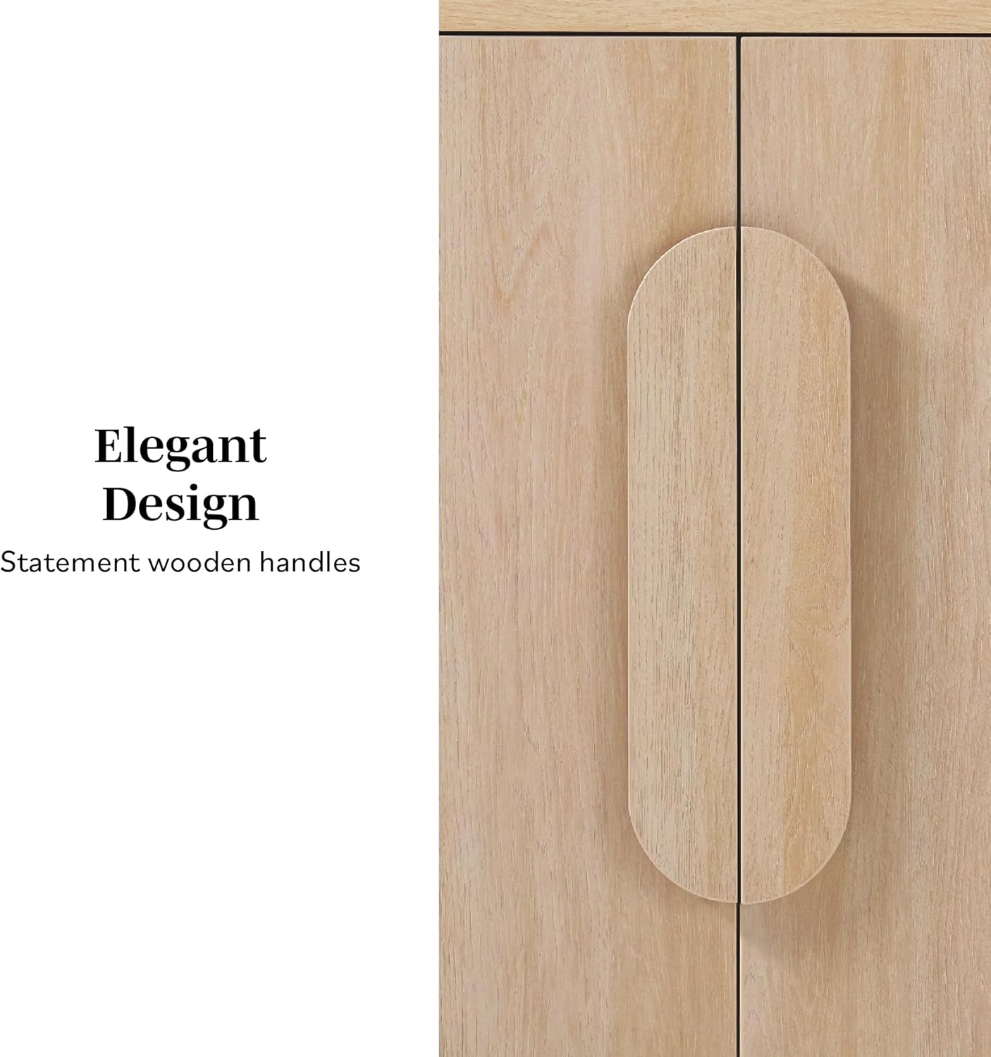 - Included Components: Comes with wooden shelves, slab doors, and wooden handles, all in a stained finish