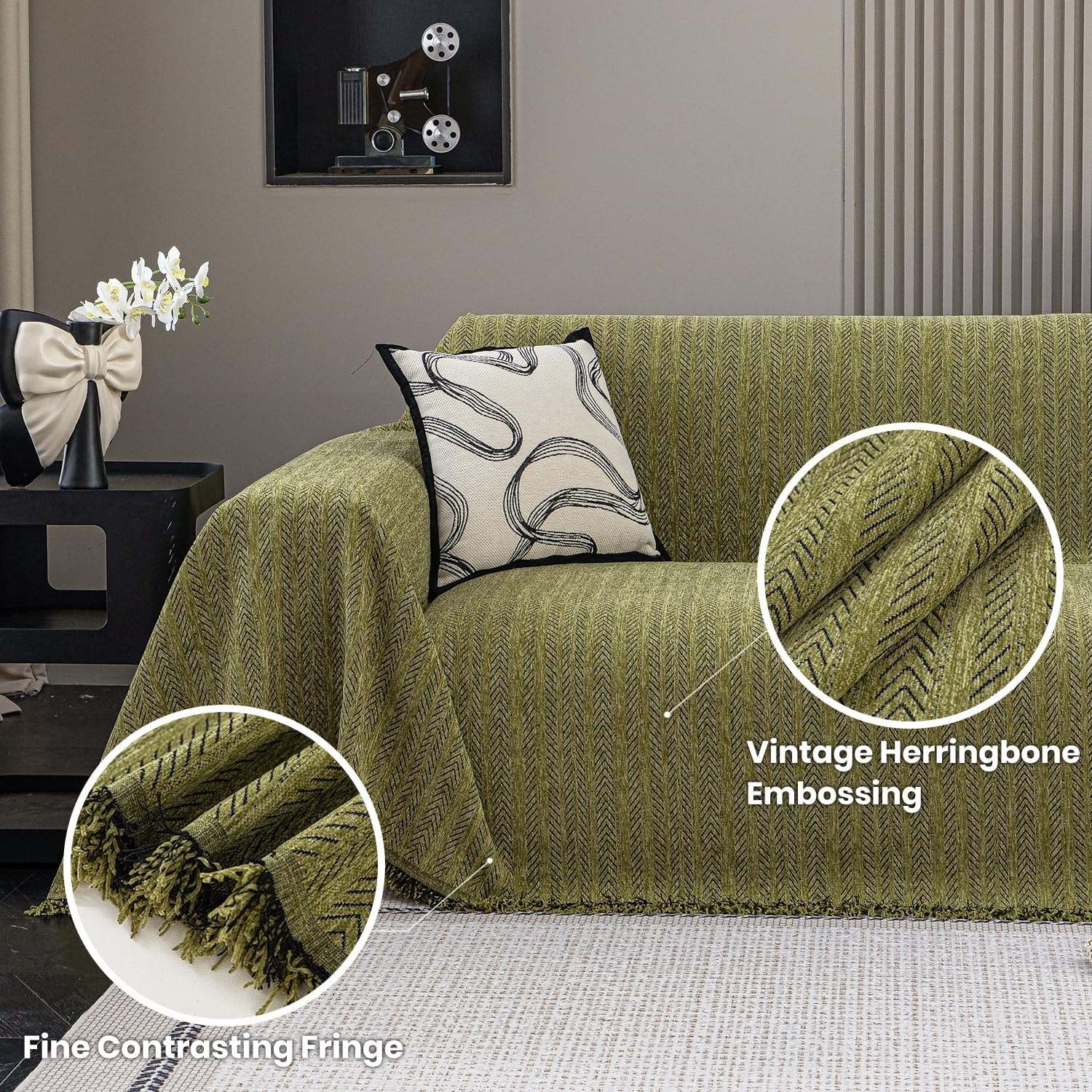 Nobildonna Sofa Cover Washable Soft Thicken Chenille Couch Cover with Tassel,Waterproof Sofa Slipcover for 3-4 Cushion Couch,Sectional Sofa,L-Shaped Furniture Protector Pet-Friendly,Green 71"x150"