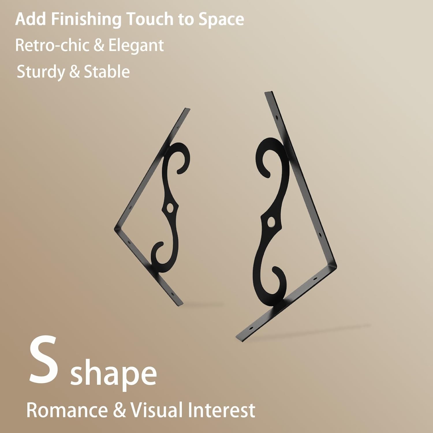 - 【Add Finishing Touch to Space】Boasting a retro-chic design, this wall mounted shelf effortlessly integrates with any decor style. Rusticity wood grain and exquisite S-shaped iron brackets flaunt visual interest and romance. It serves as both a practical storage solution and a stylish focal point
