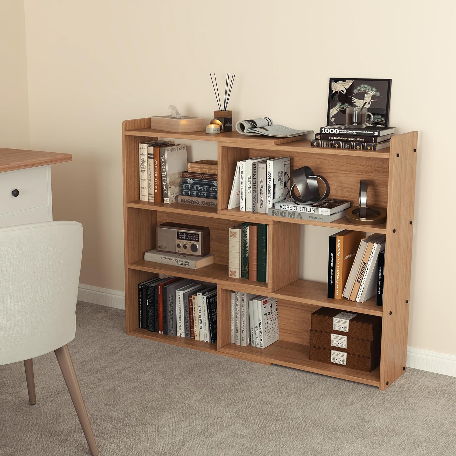 Open Shelf Low Bookcase,Wooden 4-Tier Floor Standing Expandable 25-47 inch Wide Bookcase,with Side Panels Frame for Home and Office