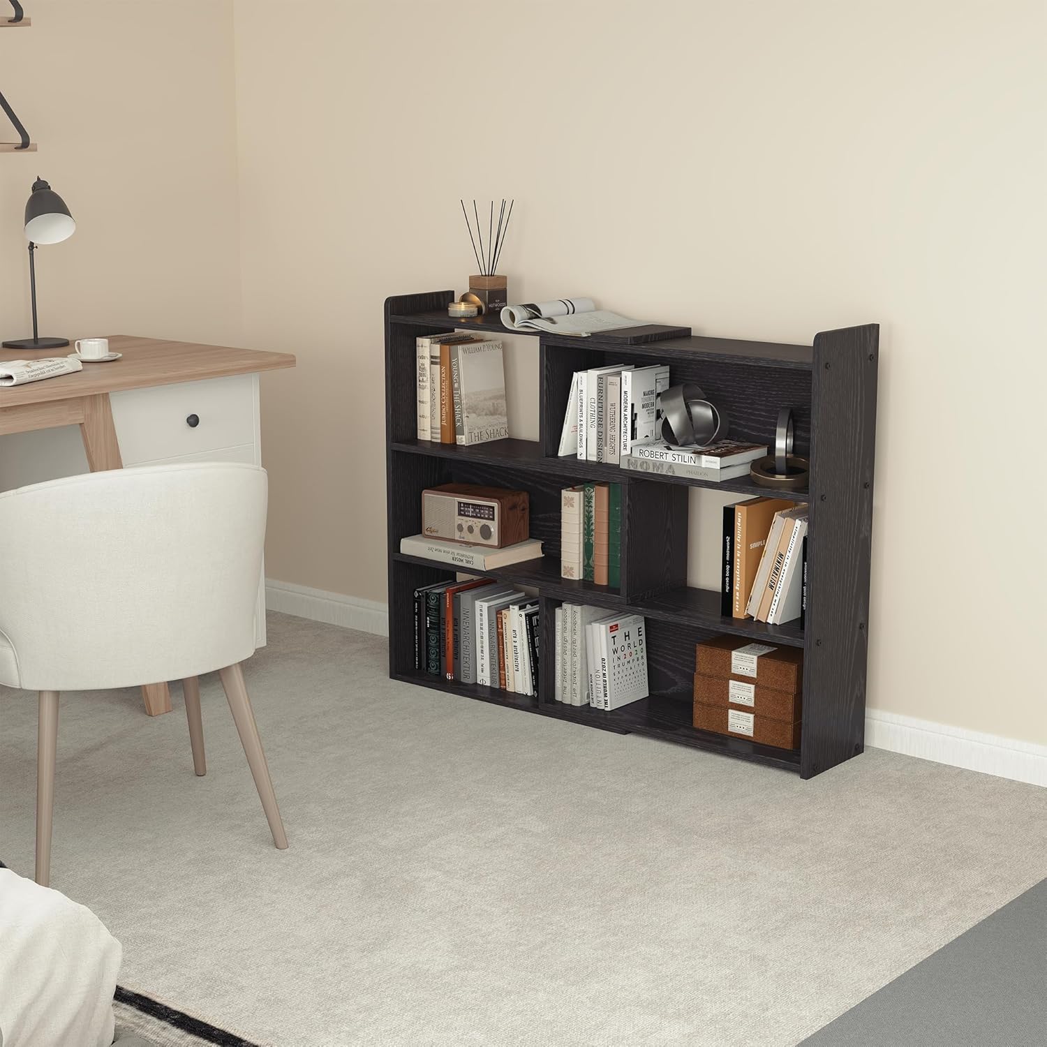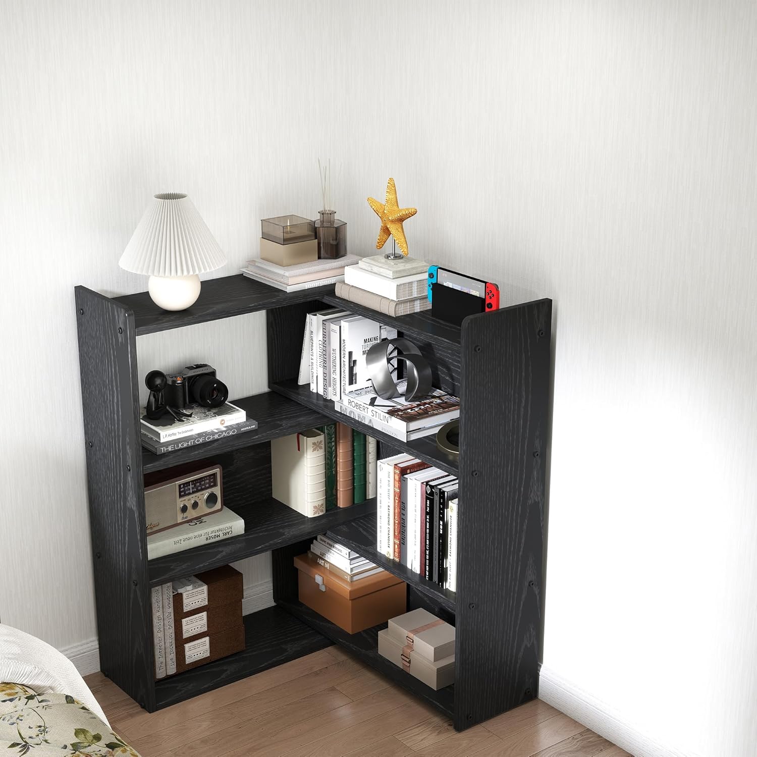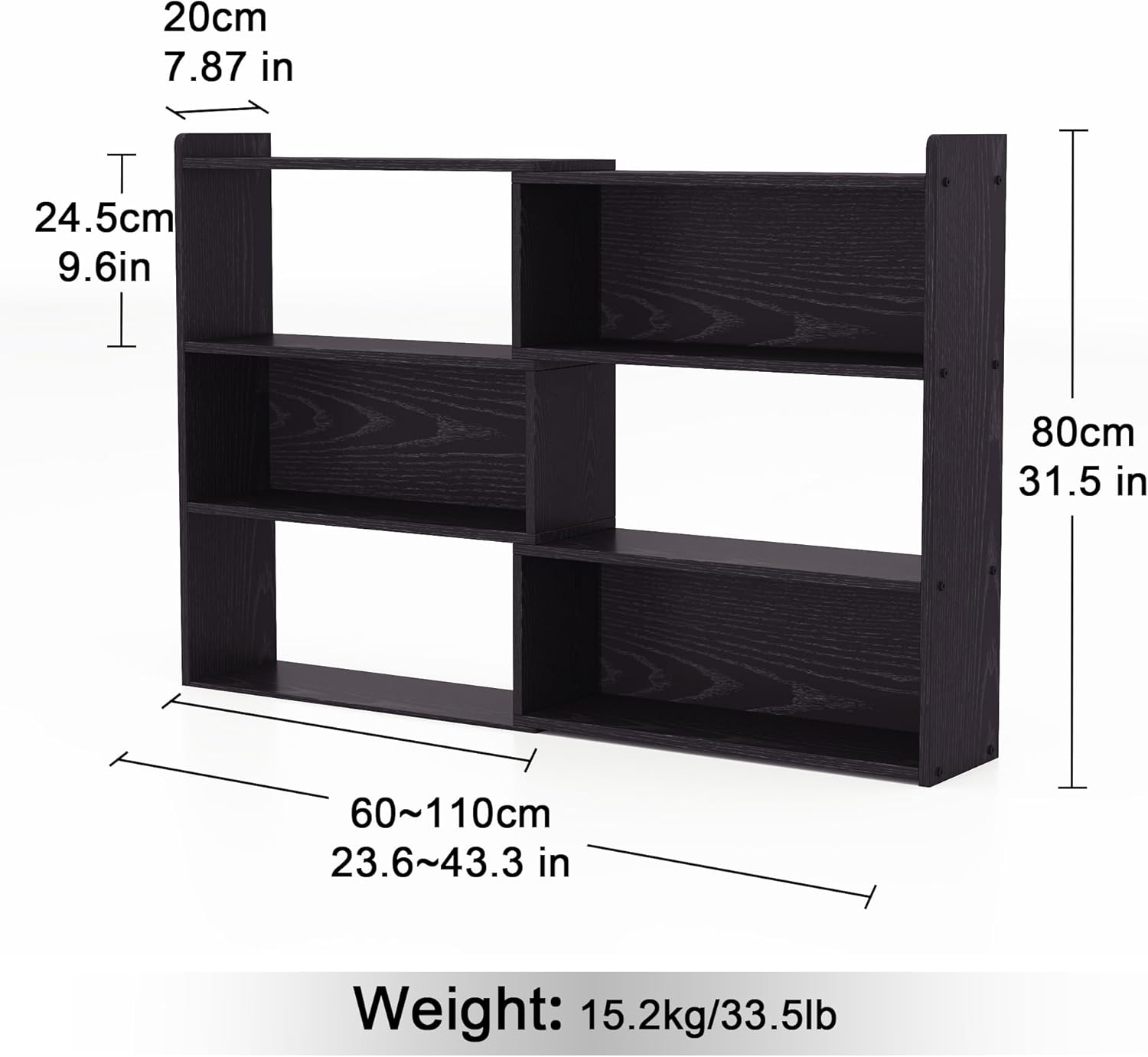 - EXPANDABLE DESIGN: This bookshelf offers you extreme creative flexibility. It consists of two parts that you are free to lengthen, shorten or combine at any angle to fit any space or corner in your home.