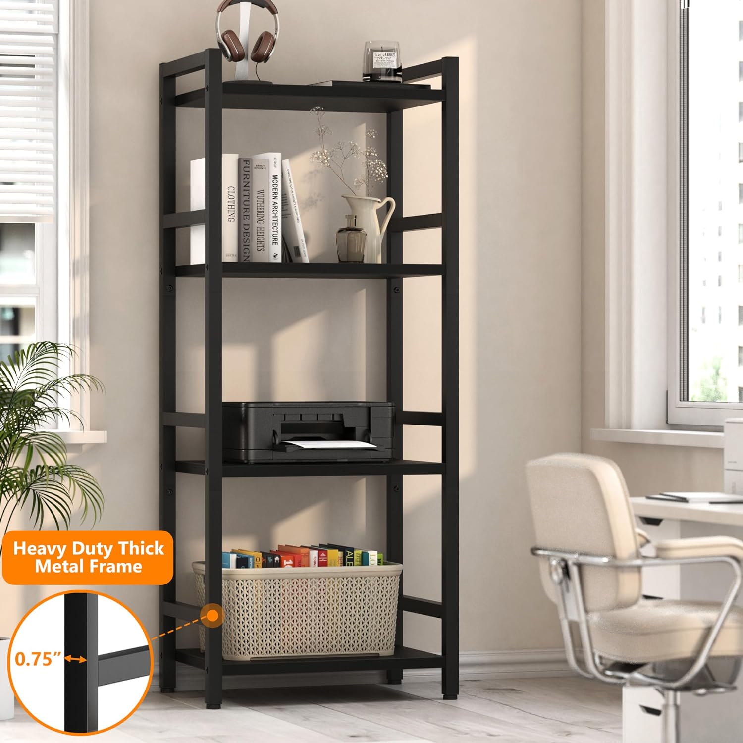 Book Shelf, 4 Tier Bookcase with Steel Frame, Stable Bookshelf Narrow Book Shelves Storage Organizer for Book CD Movie, Open Book Shelves for Living Room, Home Office, Study, Black