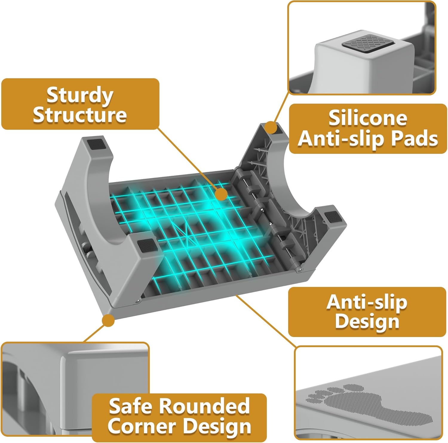 - 【Durable material & Safety & Anti-Slip】Step Stool Foldable is made of heavy-duty tough durable plastic, with bottom grid support for added structural stability and load-bearing capacity, perfect for adults, kids, seniors, and teenagers. Foldable foot stool with non-slip rubber feet creates maximum grip for each foot, ensuring stability and preventing slipping, floor scratches and accidental tipping