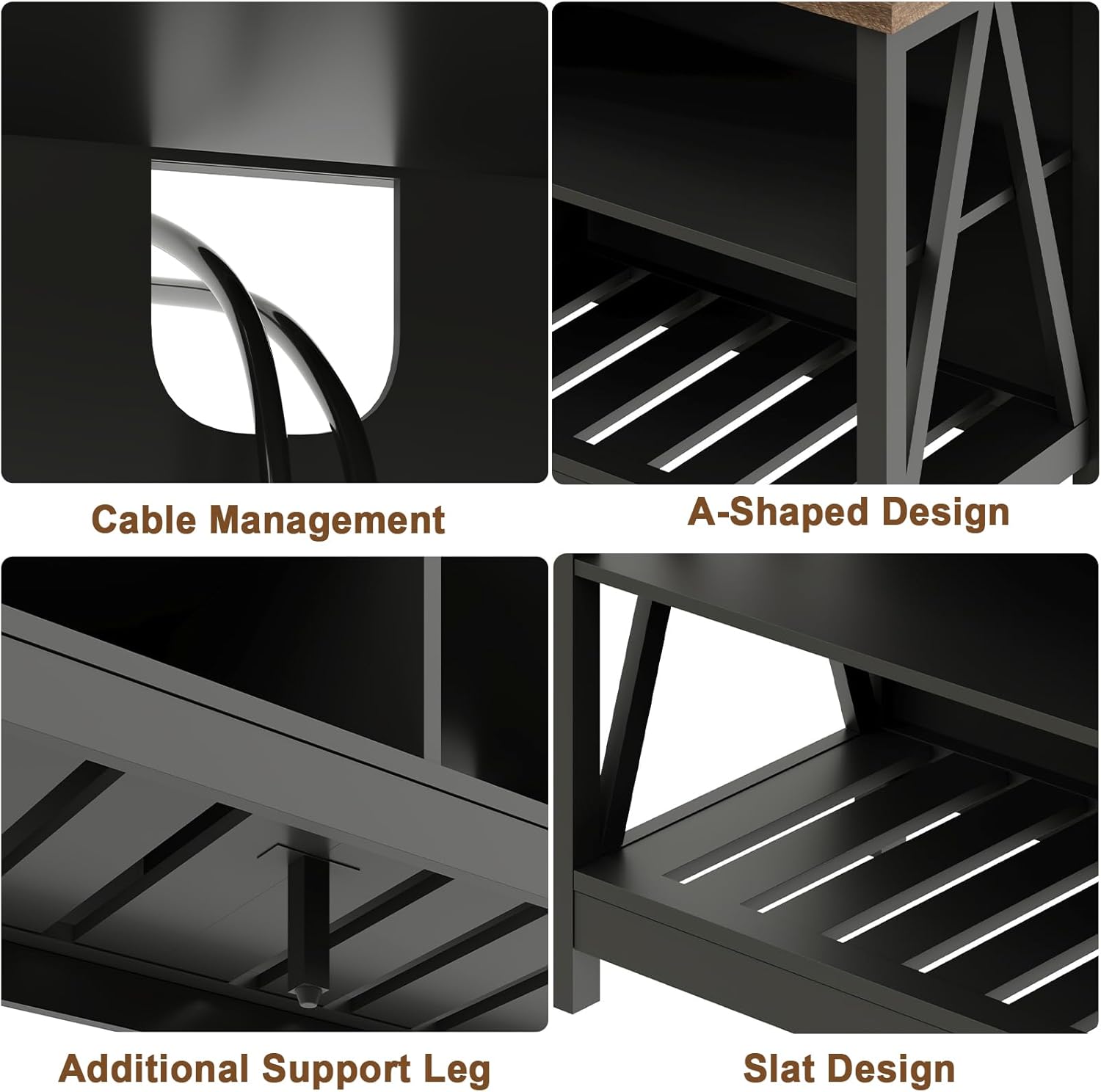 - 【Farmhouse Style Design】The elegant black finish of the TV console paired with a rustic wood grain top and slatted bottom shelf are designed to complement any home decor and create a cozy and inviting atmosphere. Its versatile design blends functionality with style, making it a practical and attractive solution for any room