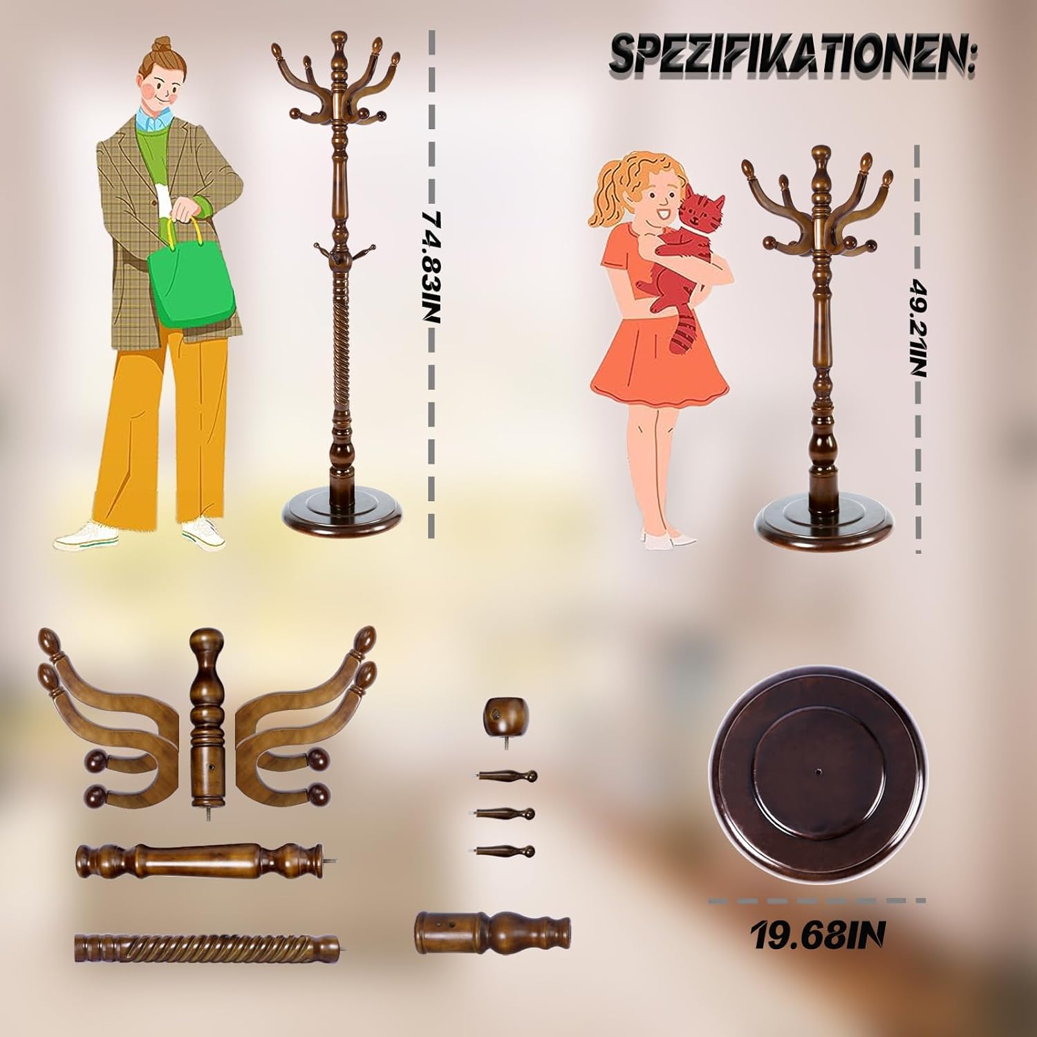 - Sturdy and Stable:The wooden coat rack is carefully selected from natural birch wood. ensures stability. exquisite resin hooks with smooth lines, hard and unbreakable. coat stands for entryway smooth and free of burrs, and it can be hung without damaging clothes
