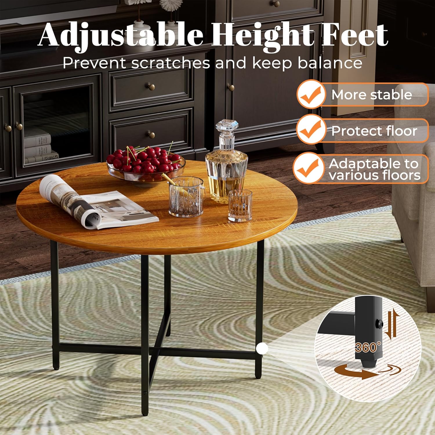 - Adjustable Feet for Stability: Equipped with four silent, adjustable feet, this circle coffee table provides extra stability and prevents floor damage. Perfect for uneven surfaces, ensuring a level and secure placement