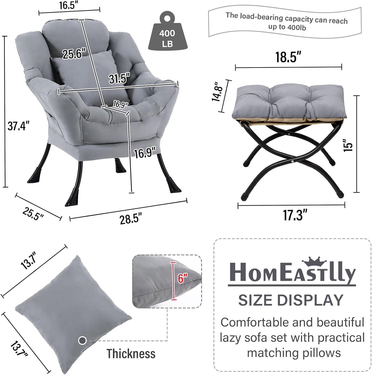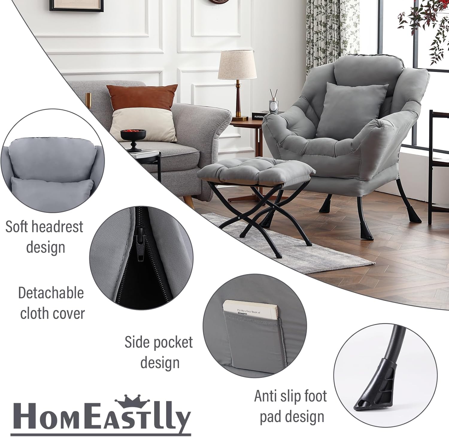 - 【EASY ASSEMBLY】Our lazy chair with ottoman offers a experience, thanks to this comfy chair’s user-friendly design. With clear, illustrated instructions and no need for extra tools, setting up your relaxation easy.
