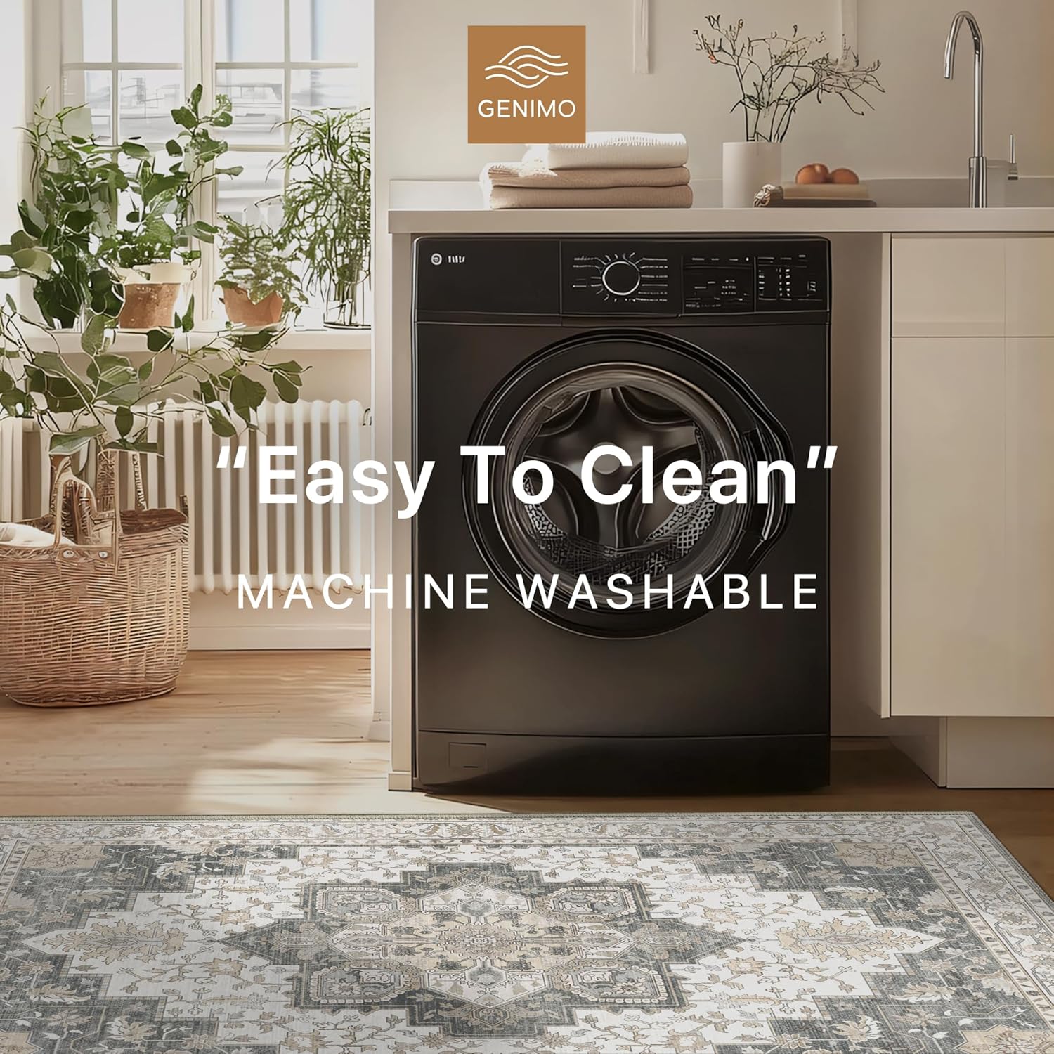 GENIMO 2x5 Runner Rugs for Hallway, Machine Washable Non Slip Vintage Retro Rugs, Low Pile Lightweight Soft Print Rug for enrtyway, Corridor, Home Office, Kitchen, Heathered Grey