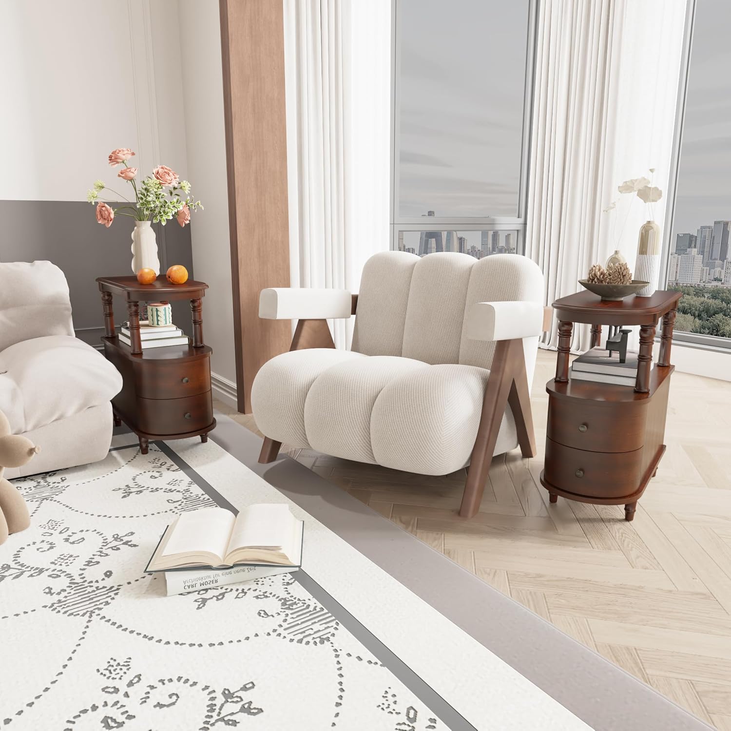 Wood End Table with 2 Drawers and Storage Shelf, Narrow Sofa Side Table for Living Room, Vintage Slim Nightstand Bedside Table for Bedroom, Slim Chair Side Table Cherry Walnut BG-A508-CY