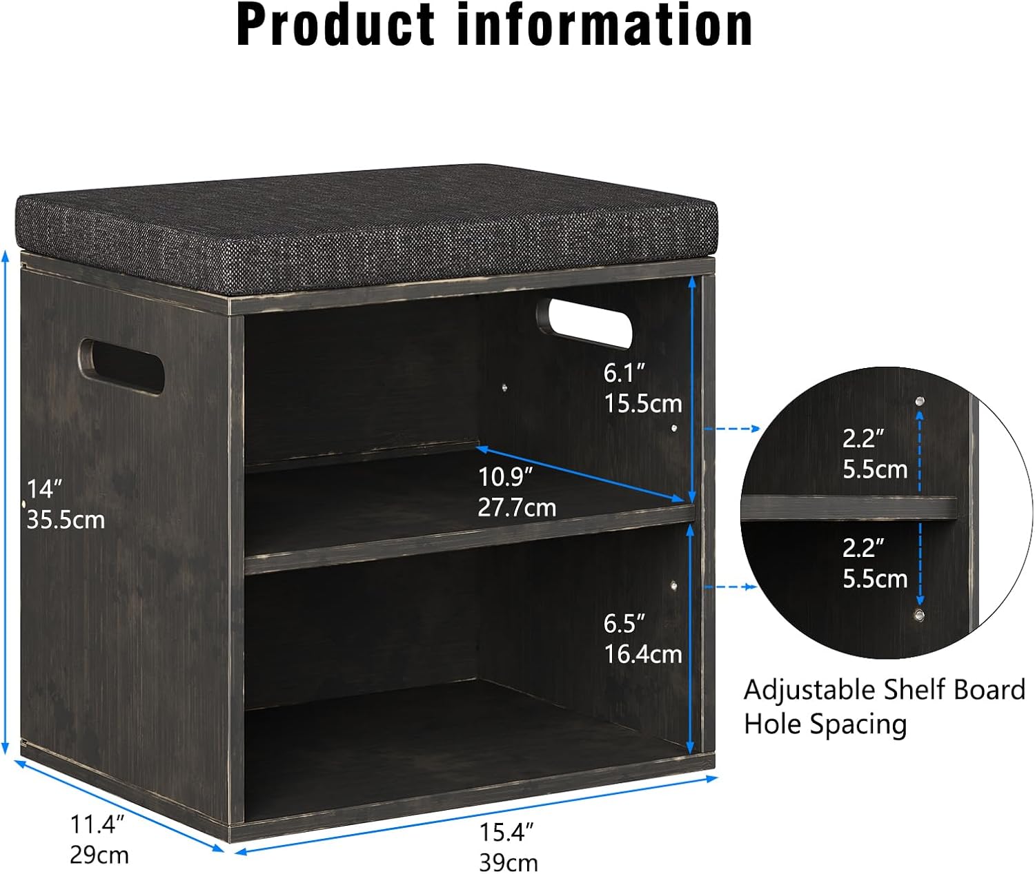 - Adjustable Shelves for Multiple Needs: This small storage bench features 3 adjustable and removable shelves with 3 different height settings, offering versatile storage options for different types of shoes. This small bench is designed to organize shoes, while also offering a personalized solution for organizing items of all sizes