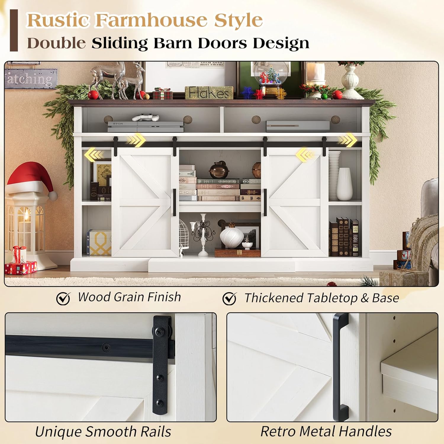 - [Farmhouse Sliding Barn Doors] Rustic entertainment center features 2 sliding barn doors, contributing a distinctive rural flavor to your interior design scheme. Quality metal bars & handles make doors slide smoothly