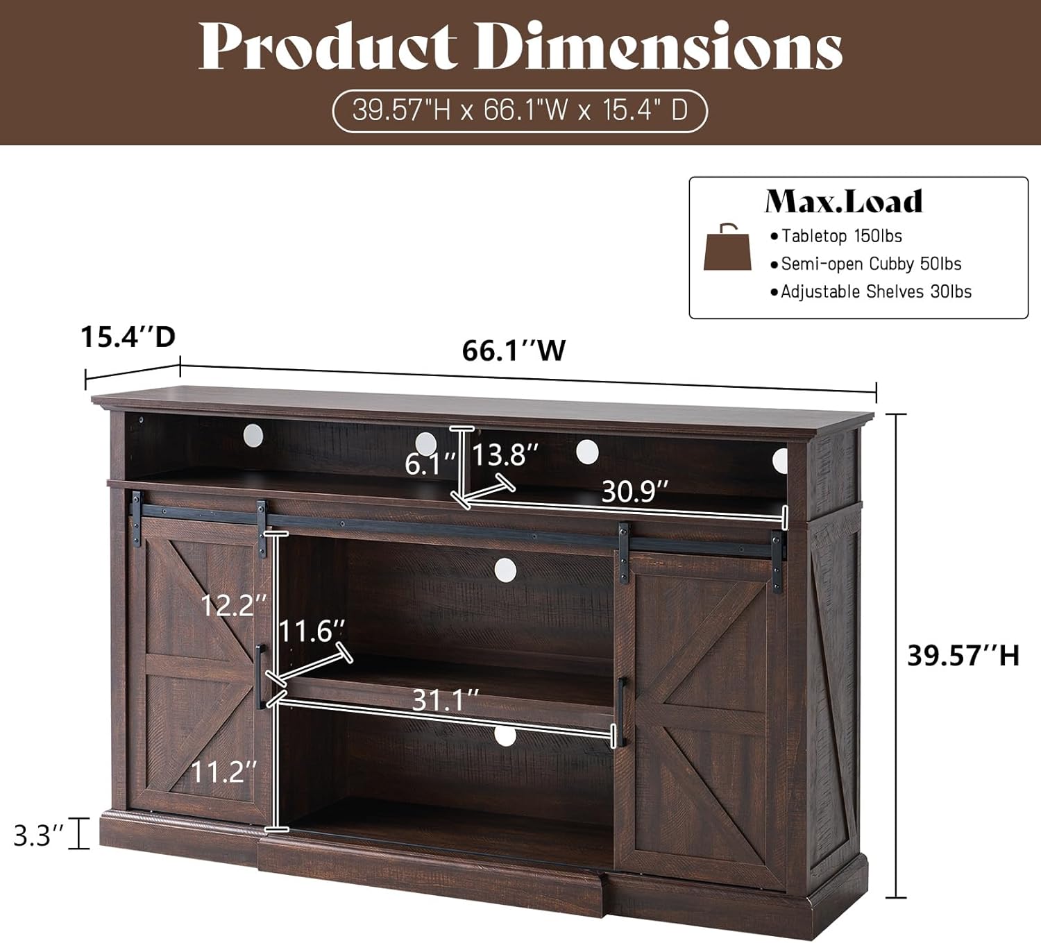 - [Farmhouse Sliding Barn Doors] Rustic entertainment center features 2 sliding barn doors, contributing a distinctive rural flavor to your interior design scheme. Quality metal bars & handles make doors slide smoothly