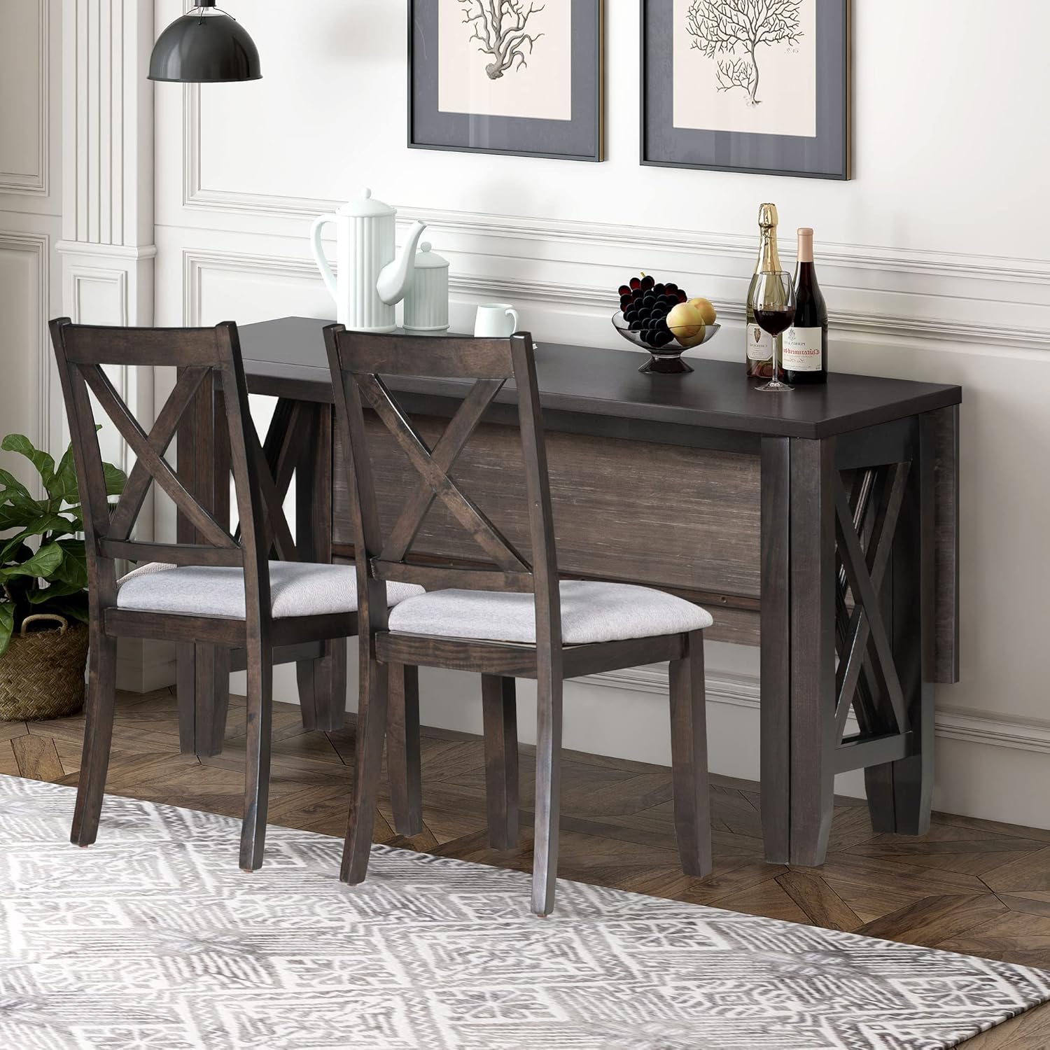 Ball & Cast 6-Piece Dining Table Set, 60" Wood Dining Kitchen Table & Chairs Set, Rectangular Dining Room Foldable Table with 4 Upholstered Chairs & 1 Bench,Perfect for Dining Room, Kitchen, Espresso