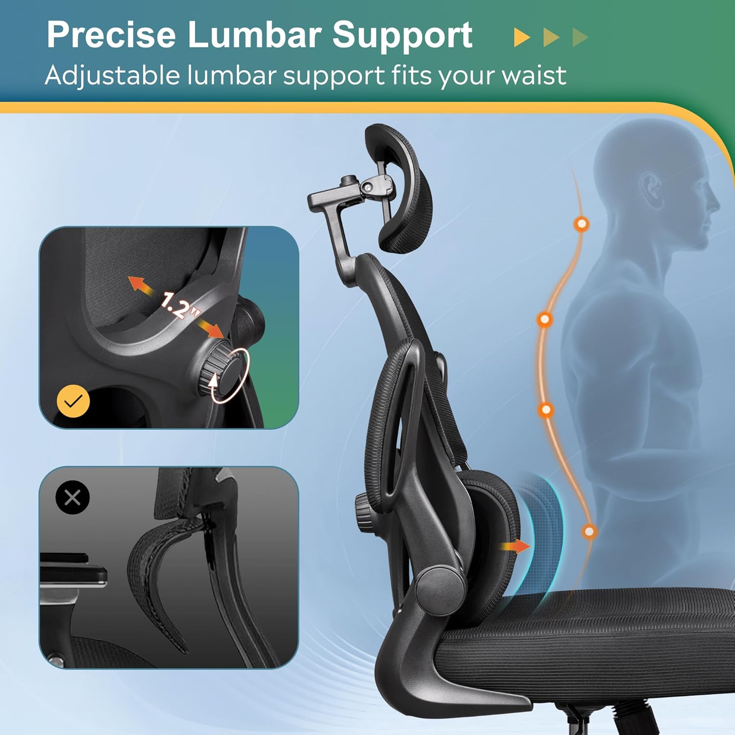 - Space-Saving Flip-Up Armrests: Free up valuable space with 90° flip-up armrests, ideal for small workspaces and compact setups.