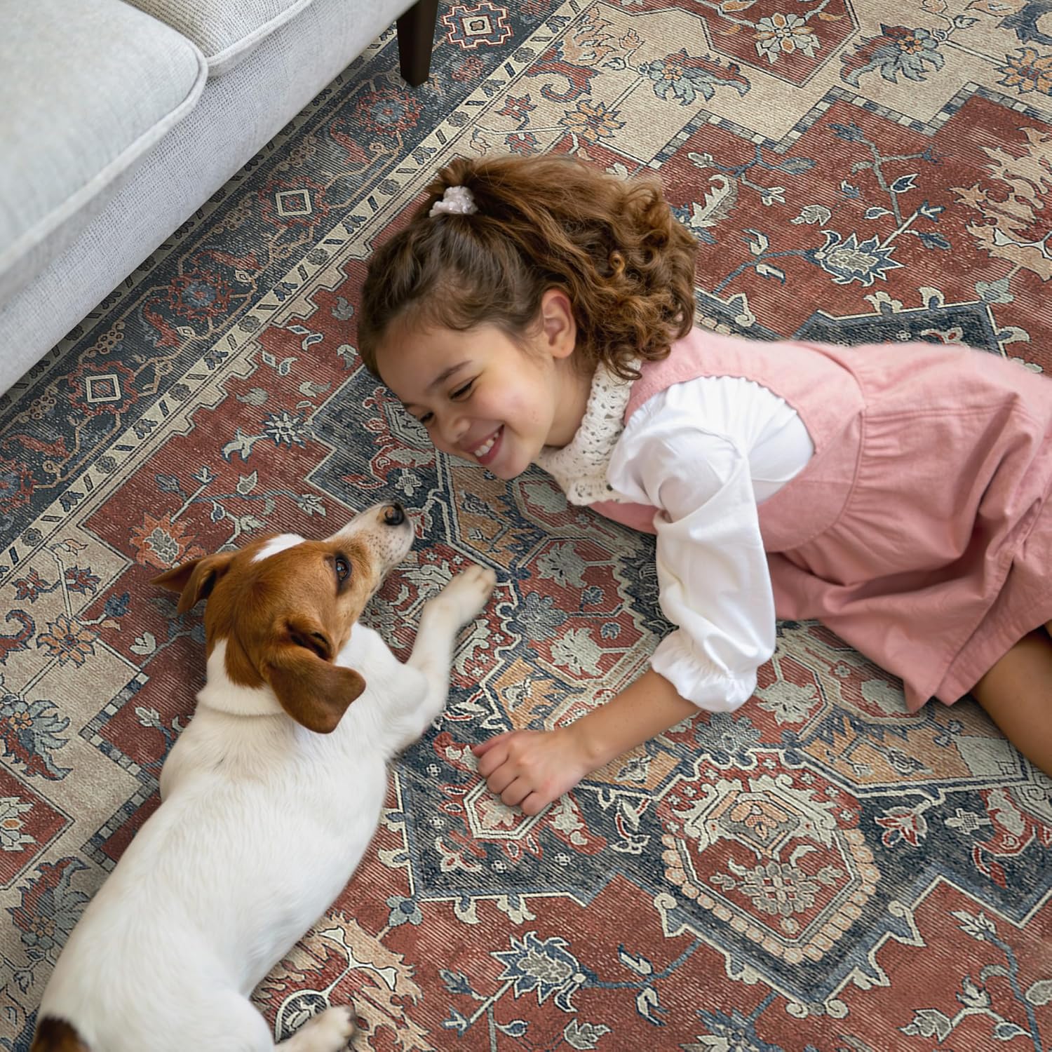 - Soft & Well Designed: This area rug captures the opulence of vintage design with intricate floral patterns in harmonious shades. Made from high-quality low pile soft fibers, it provids a certain degree of cushioning for the feet. This vintage rug skillfully captures a blend of classic, modern, boho, faded, delivering not just striking design but also a sumptuously soft texture. The pattern and color vividly match the images, with consistent coloring throughout the entire piece.