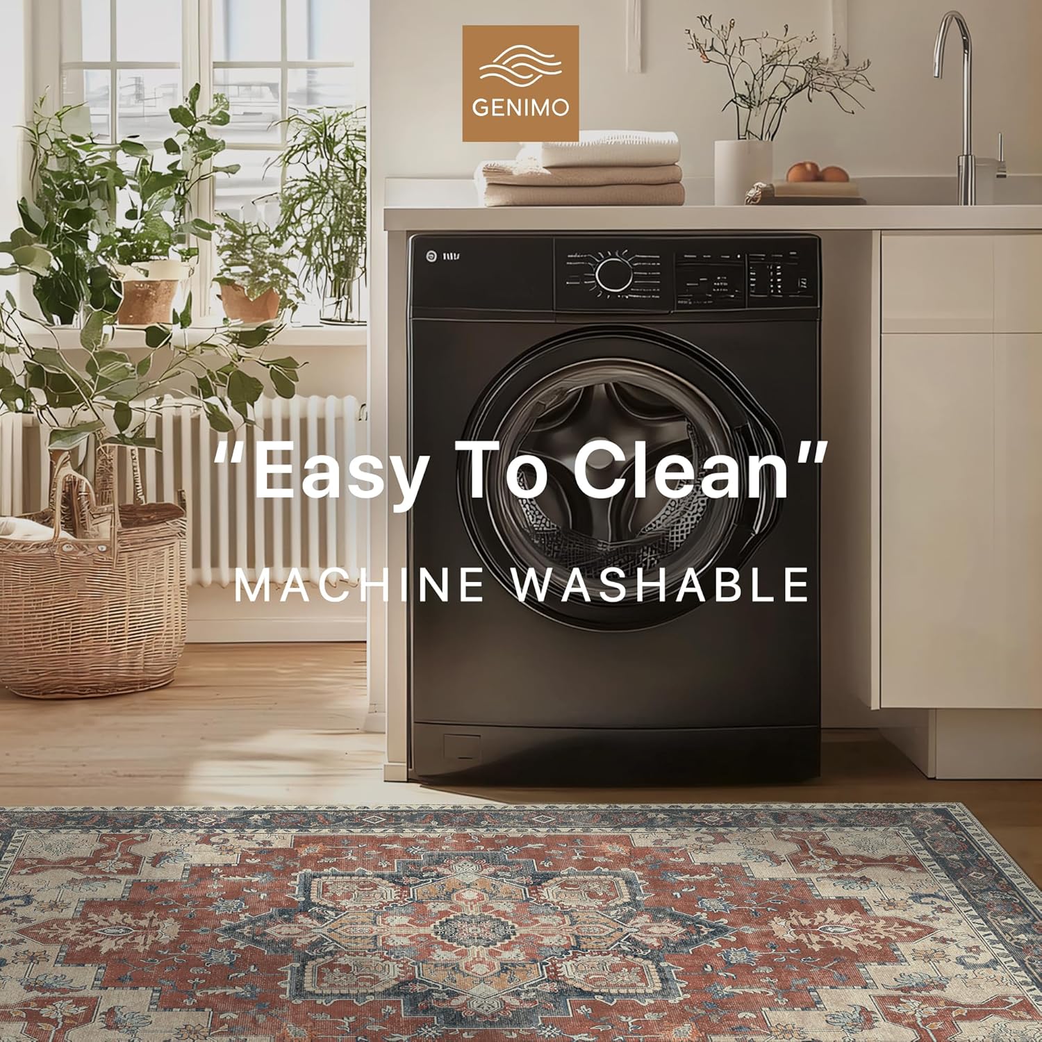 GENIMO 2'6''x10 Runner Rugs for Hallway, Machine Washable Non Slip Vintage Rugs, Low Pile Lightweight Soft Print Rug for enrtyway, Corridor, Home Office, Kitchen, Bordeaux