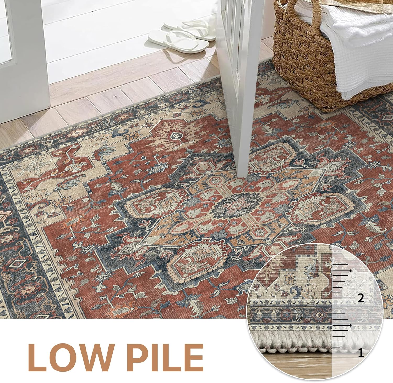 - Soft & Well Designed: This area rug captures the opulence of vintage design with intricate floral patterns in harmonious shades. Made from high-quality low pile soft fibers, it provids a certain degree of cushioning for the feet. This vintage rug skillfully captures a blend of classic, modern, boho, faded, delivering not just striking design but also a sumptuously soft texture. The pattern and color vividly match the images, with consistent coloring throughout the entire piece.