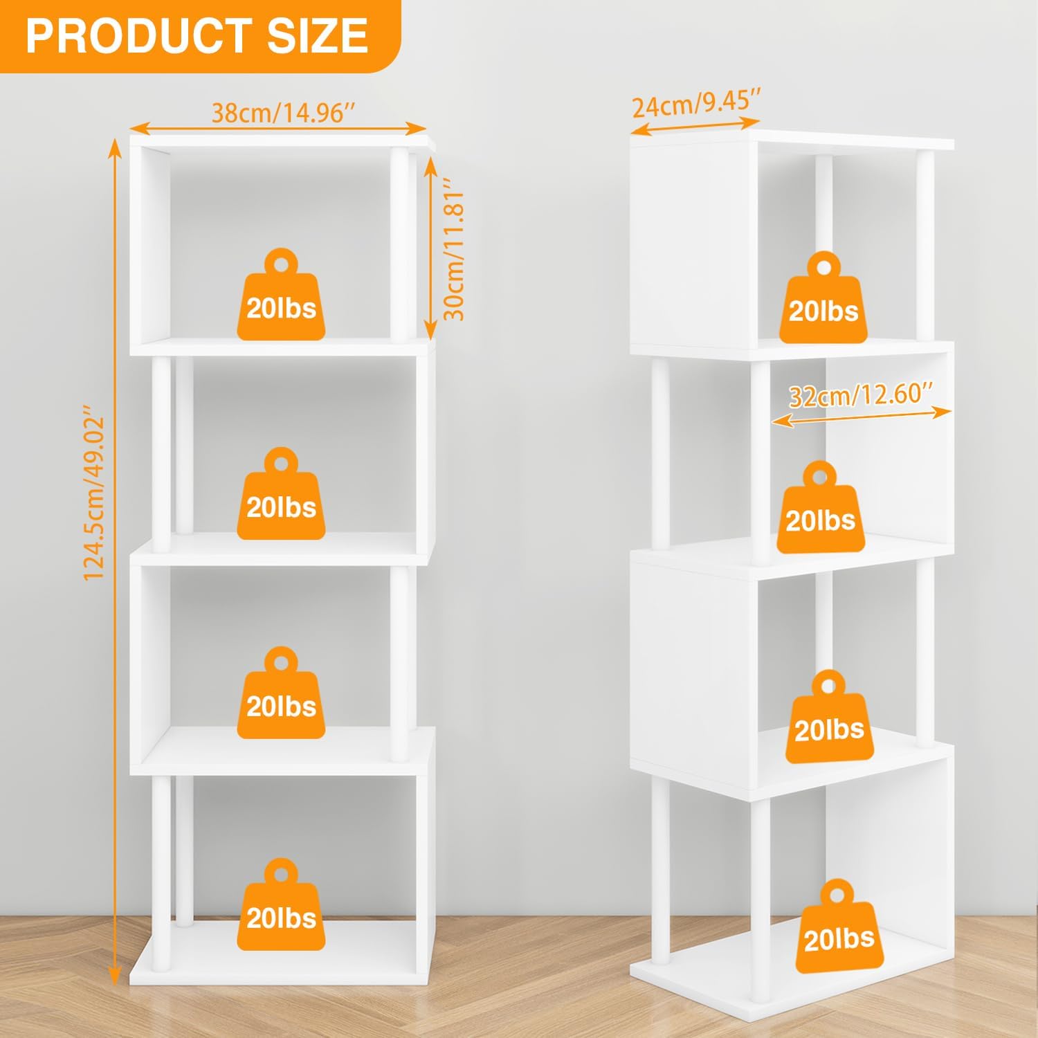 - LARGE STORAGE SPACE:The bookshelf dimension is 15"D x 9.4"W x 49"H, S-shaped geometric design with clean and stylish lines, perfect for holding your favorite books/trinkets/family photos and more. Wooden bookshelf can be used as bookshelf, display shelf and storage shelf for any room. Help you improve your quality of life.
