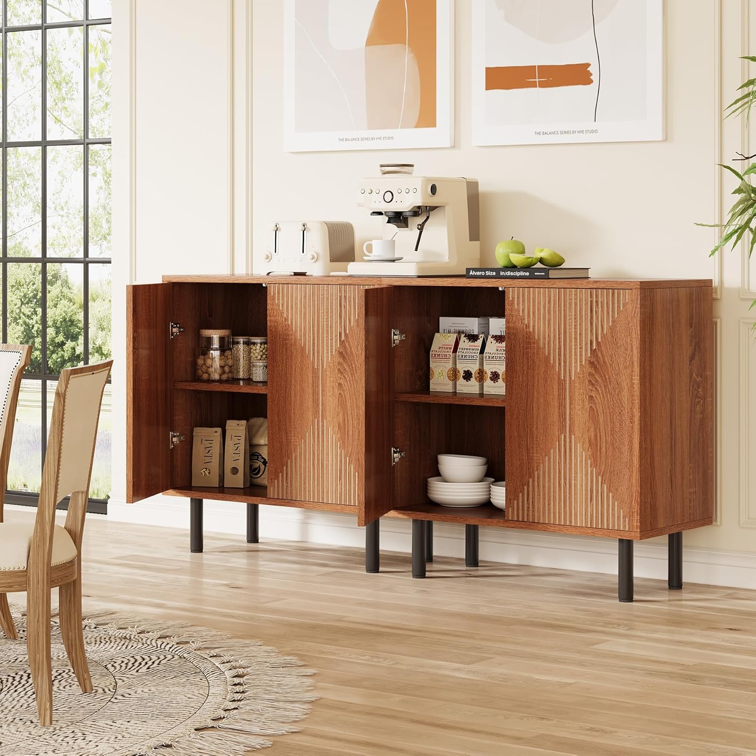 - Efficient Storage: Equipped with 4 doors, the cabinet provides ample, concealed storage for your kitchen or dining essentials, keeping your space organized and clutter-free