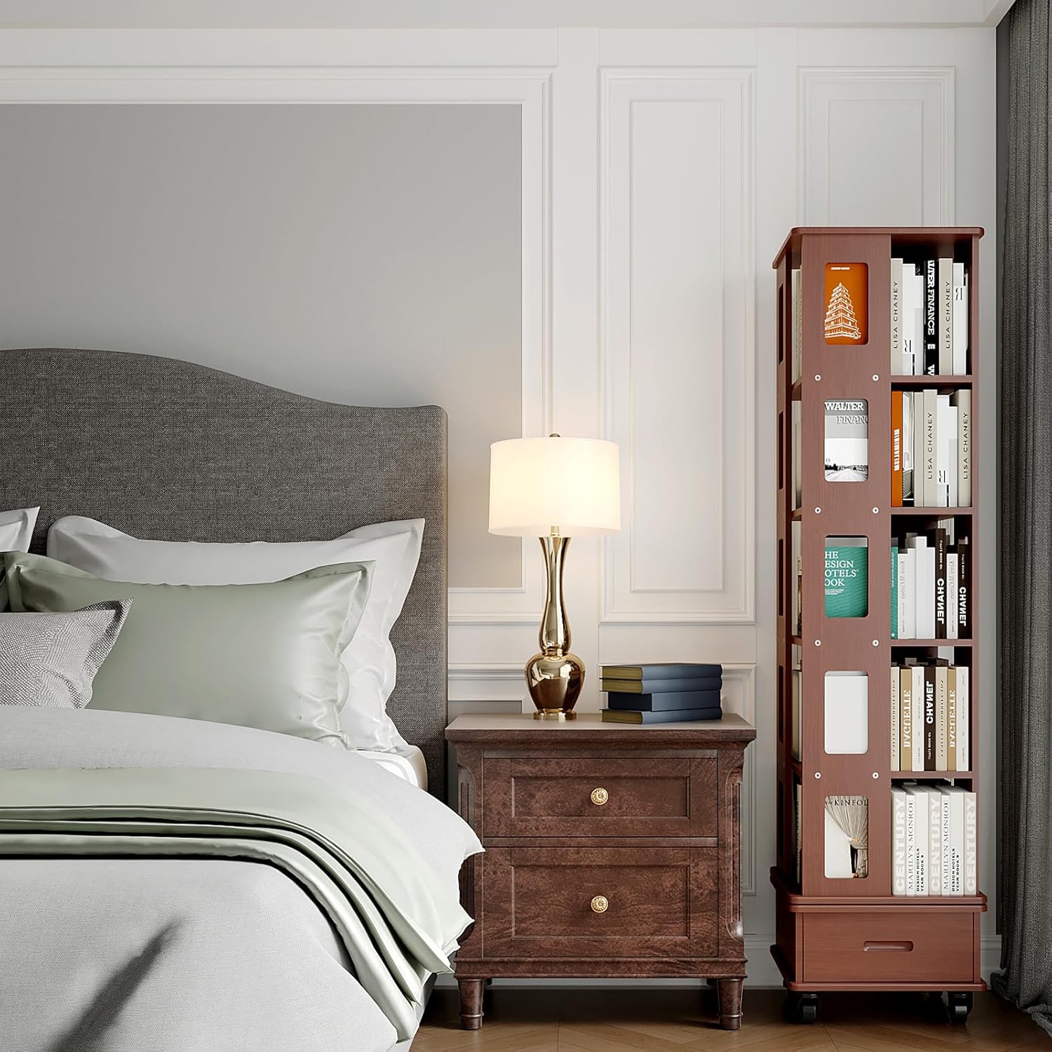 - 360° Rotating Design: The bookshelf spins effortlessly, allowing quick access to your favorite books or items from any angle. Perfect for multi-purpose use in living rooms, bedrooms, or study areas.