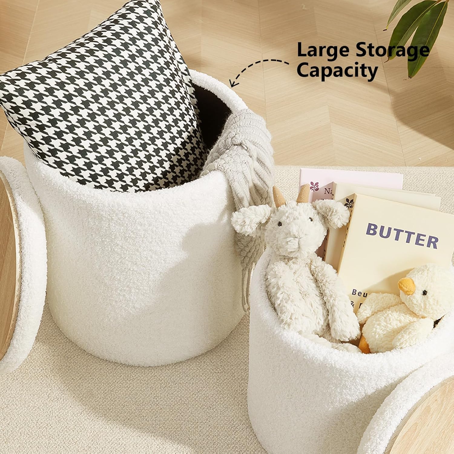 - 【Ample Storage Space】Both the large and small ottomans offer generous storage capacity. You can place them in the entryway to store shoes, in the living room for blankets and throw pillows, in the children's room to organize toys, or in the dressing room for cosmetics, bags, and other essentials.
