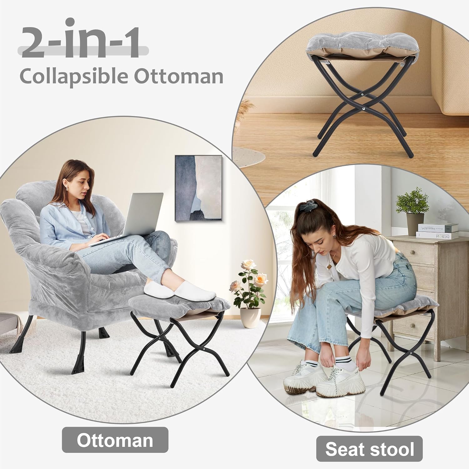 - 2-in-1 Foldable Ottoman:The comfortable lazy chair is equipped with a multifunctional folding footstool. This ottoman can not only be used as a tool to relax your feet, but it can also be used alone, placed at the door to change shoes or used as a small stool. In addition, its portability and easy storage enhance both practicality and flexibility
