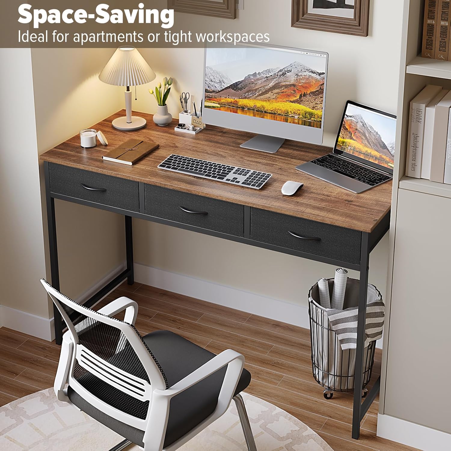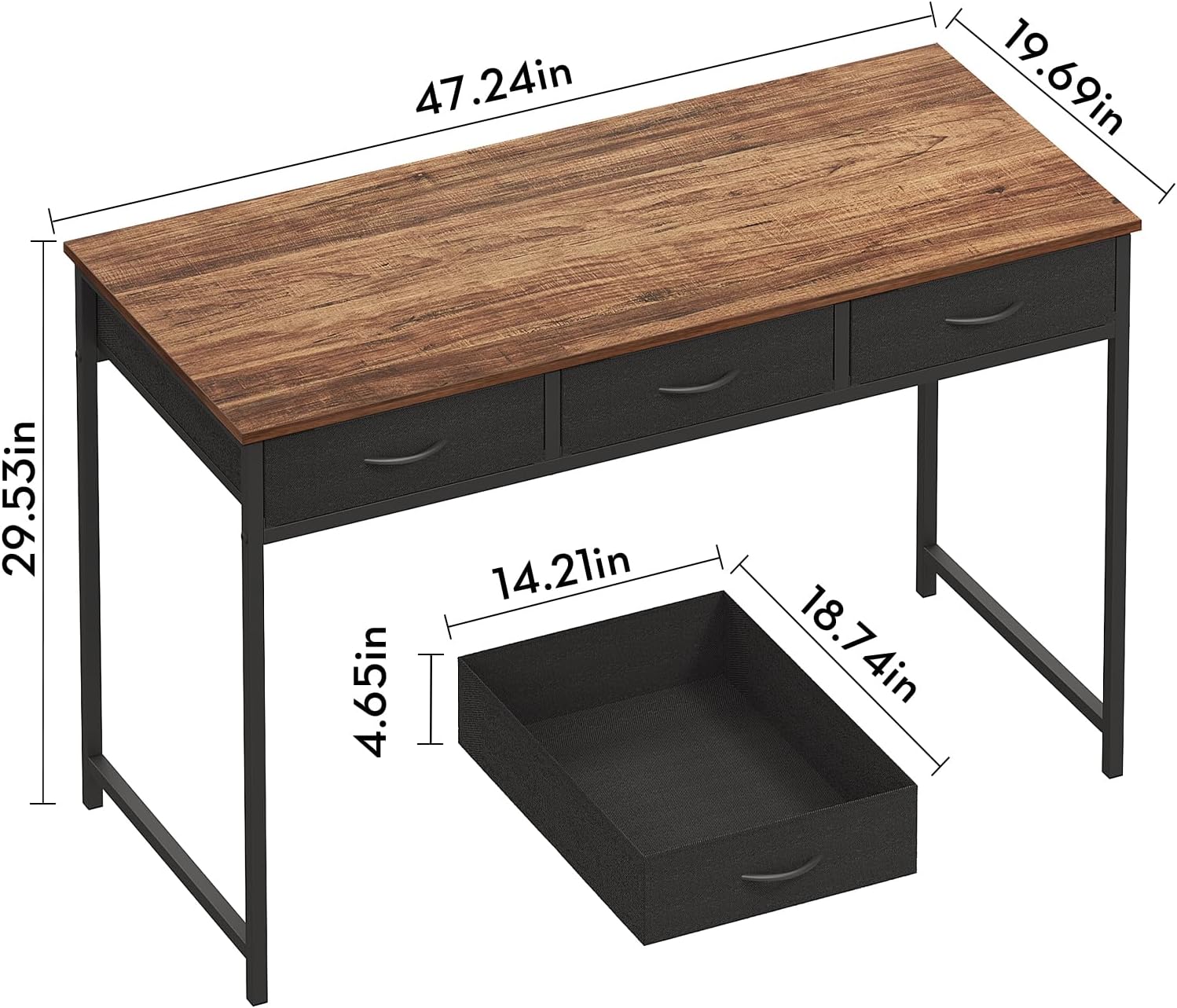 - 3 drawers for storage space: The computer desk is designed with 3 pull-out fabric drawers, providing enough storage space for pens, books, jewelry and other small daily items, which can meet your storage needs and provide plenty of space on the desk for writing, studying, makeup and other home office activities.