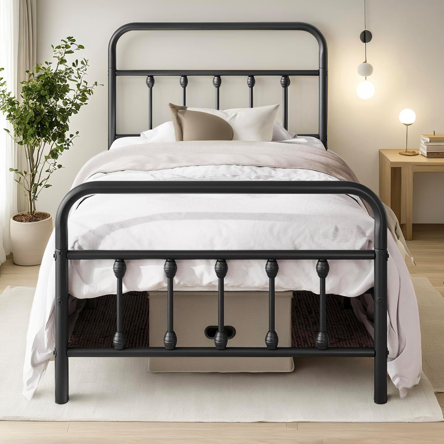 Twin Bed Frame-Classic Metal Platform Bed Frame Mattress Foundation with Victorian Style Iron-Art Headboard/Footboard/Under Bed Storage/No Box Spring Needed/Black