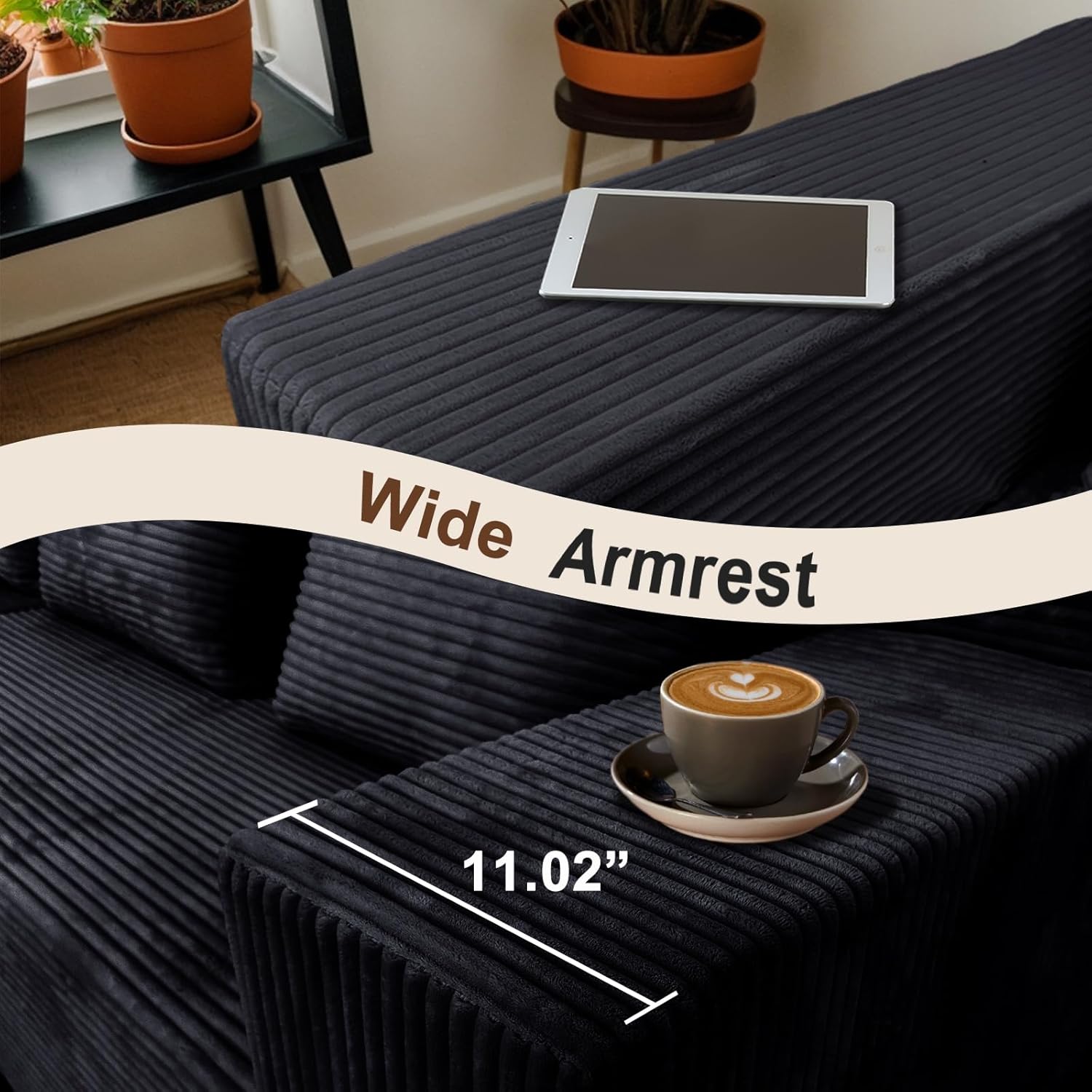 - Premium Corduroy Fabric: Revel in the sweet softness of our upgraded corduroy fabric, offering silky touch and coziness. The superior durability and subtly sheen of this breathable material make our couch with chaise stay looking fresh and charming for years of use, elevating the aesthetics of your space