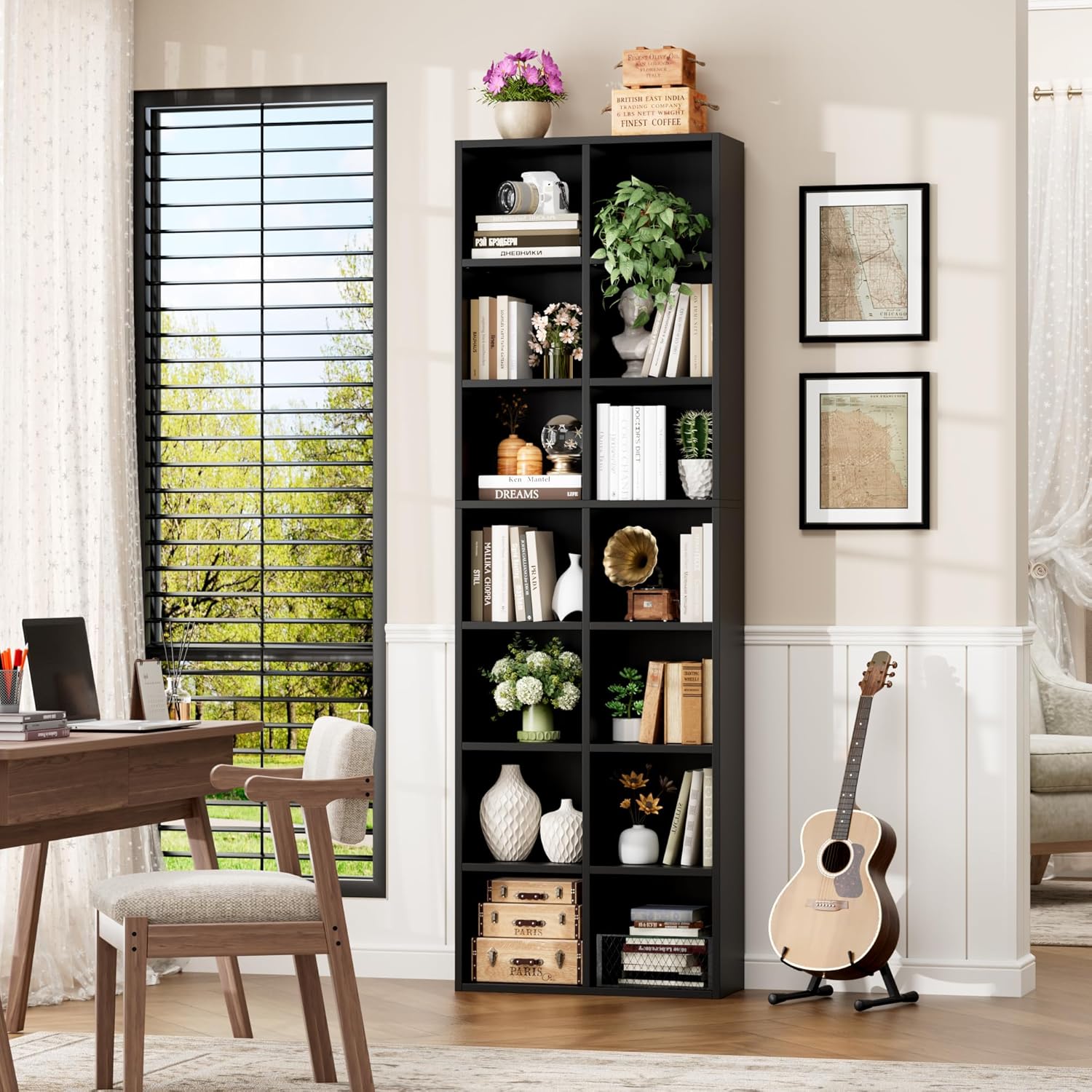 - Customizable Storage for Versatile Use: Six adjustable shelves allow you to reconfigure heights effortlessly, accommodating everything from towering art books and vinyl records to potted plants and decorative vases. Perfect for organizing home offices, living rooms, or bedrooms, this tall narrow bookshelf adapts to your evolving storage needs.
