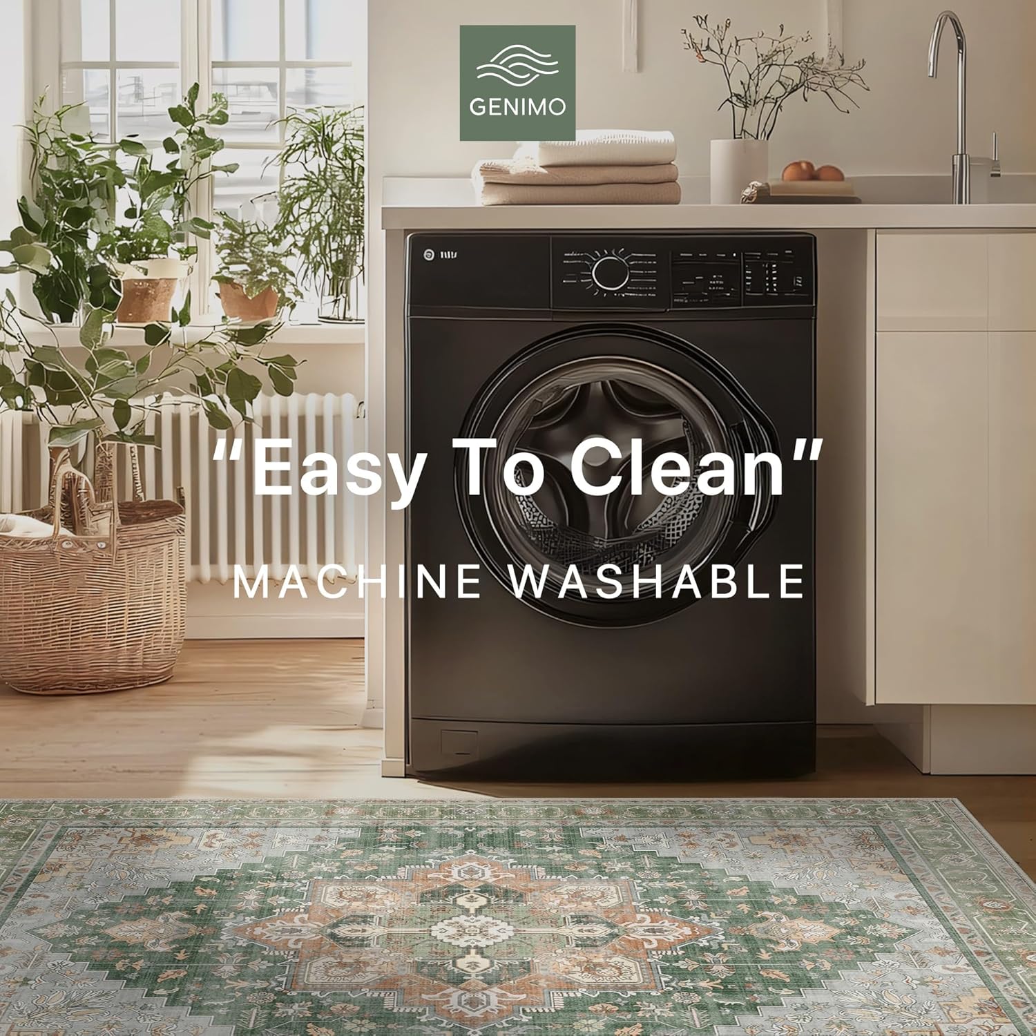 GENIMO 2x5 Runner Rugs for Hallway, Machine Washable Non Slip Vintage Rugs, Low Pile Lightweight Soft Print Rug for enrtyway, Corridor, Home Office, Kitchen, Sage Green