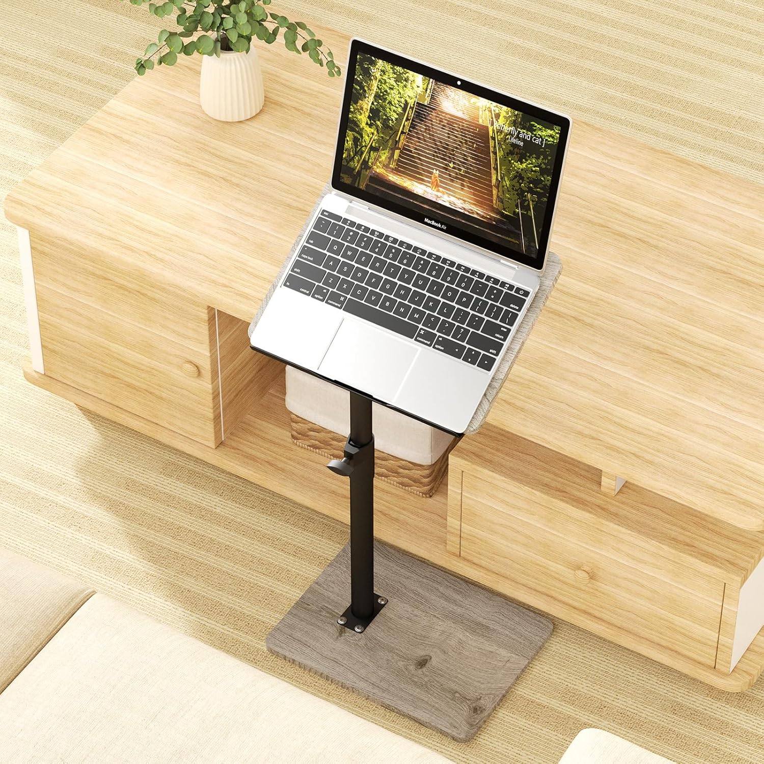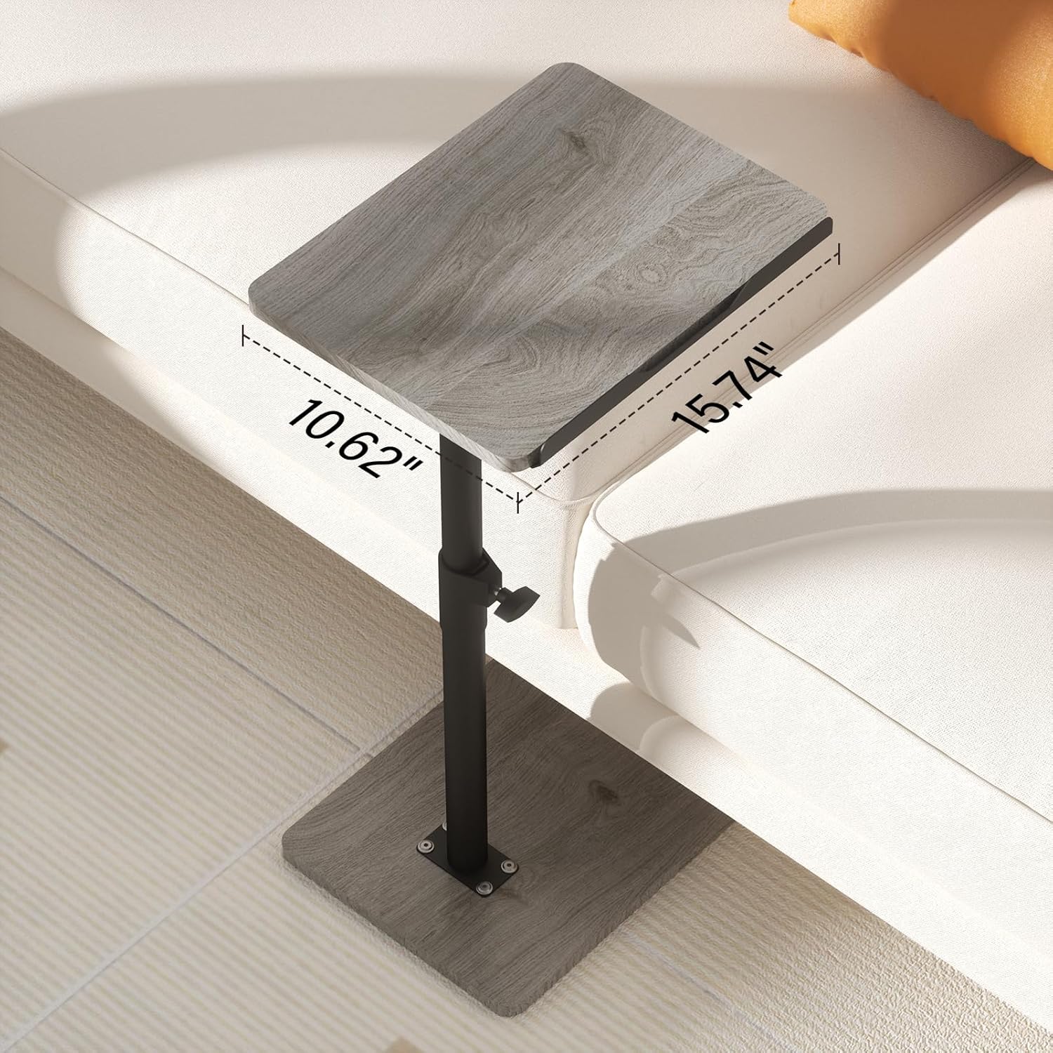 - Angle & Height-Adjustable TV Tray:The height of C-shaped side TV table tray table can be adjusted to your liking from 18” to 33”. The panel also has a 360° swivel feature and flexible angle adjustment. Enjoy the freedom to customize it to your preferred table leg angle and position under the couch or bed for your convenience.