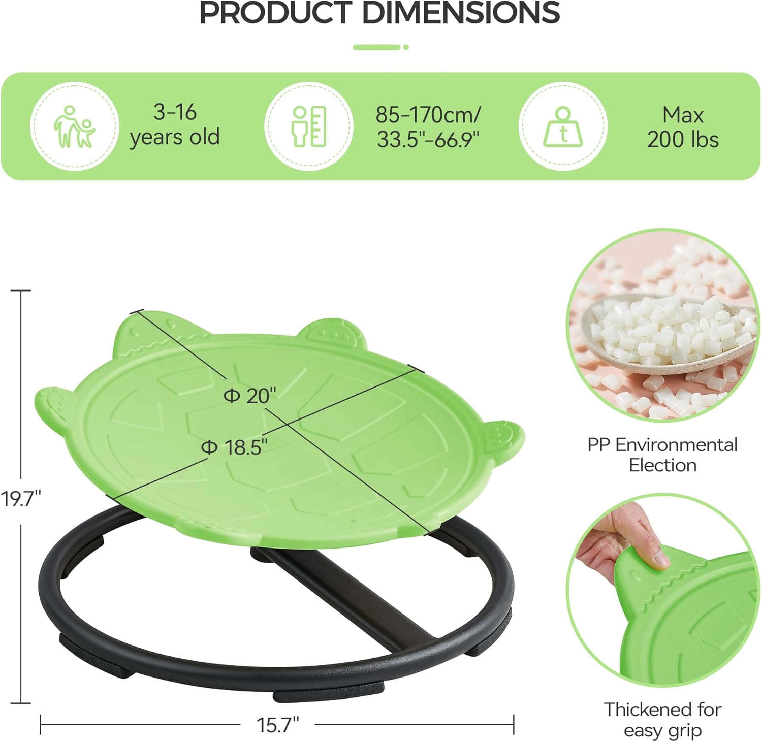 - Safe and Durable Design: Our kid sensory spinning chair is crafted from high-quality metal bases and eco-friendly PP materials, ensuring a maximum load capacity of up to 200 pounds. Non-slip rubber feet guarantee safety during play