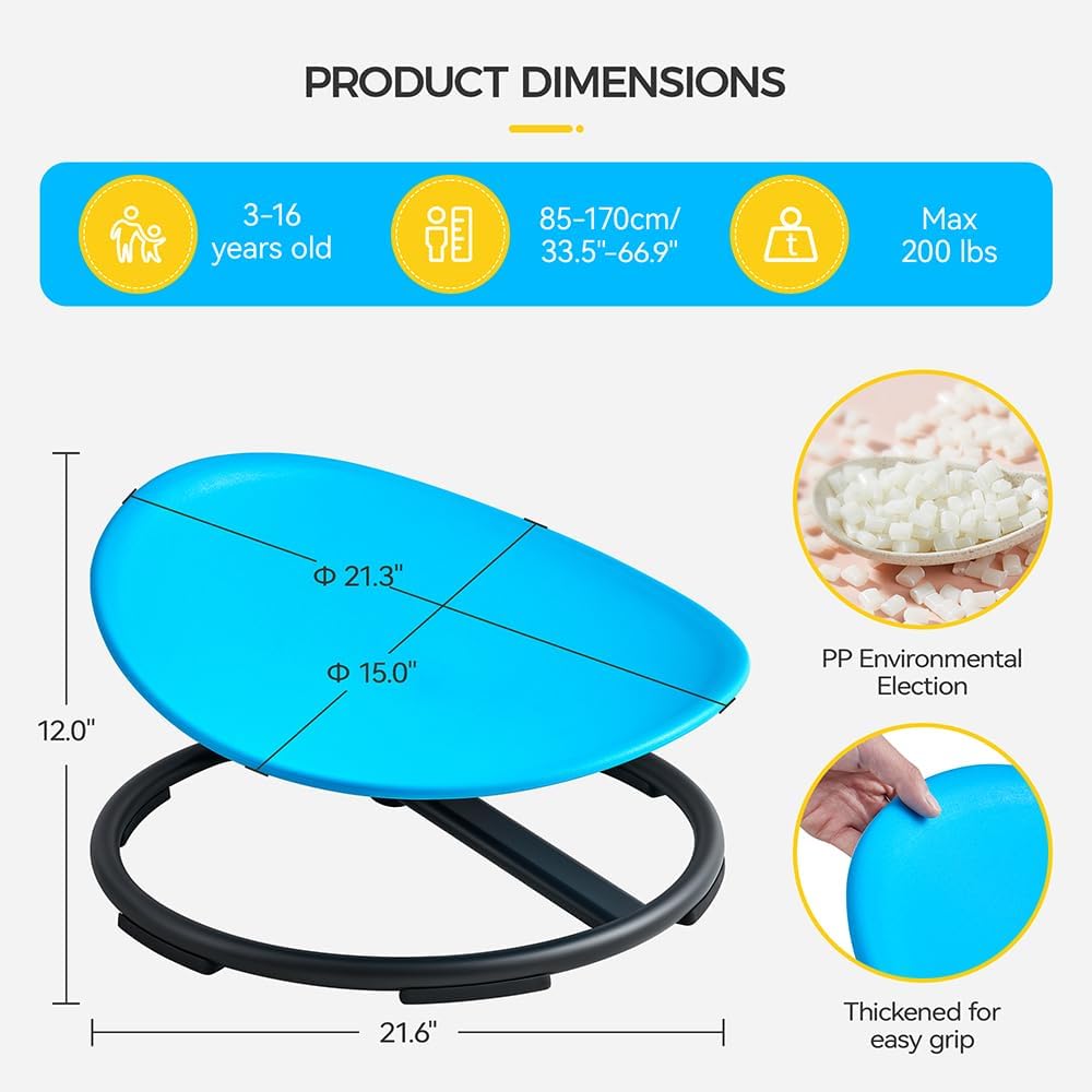 Swivel Chair for Kids, 360° Spinning Seat, Toddler Sit and Spin Wobble Chair, Sensory Balance Toys, Autism ADHD Chairs, Play Equipment Relief Motion Sickness for Boys Girls (Sky Blue)