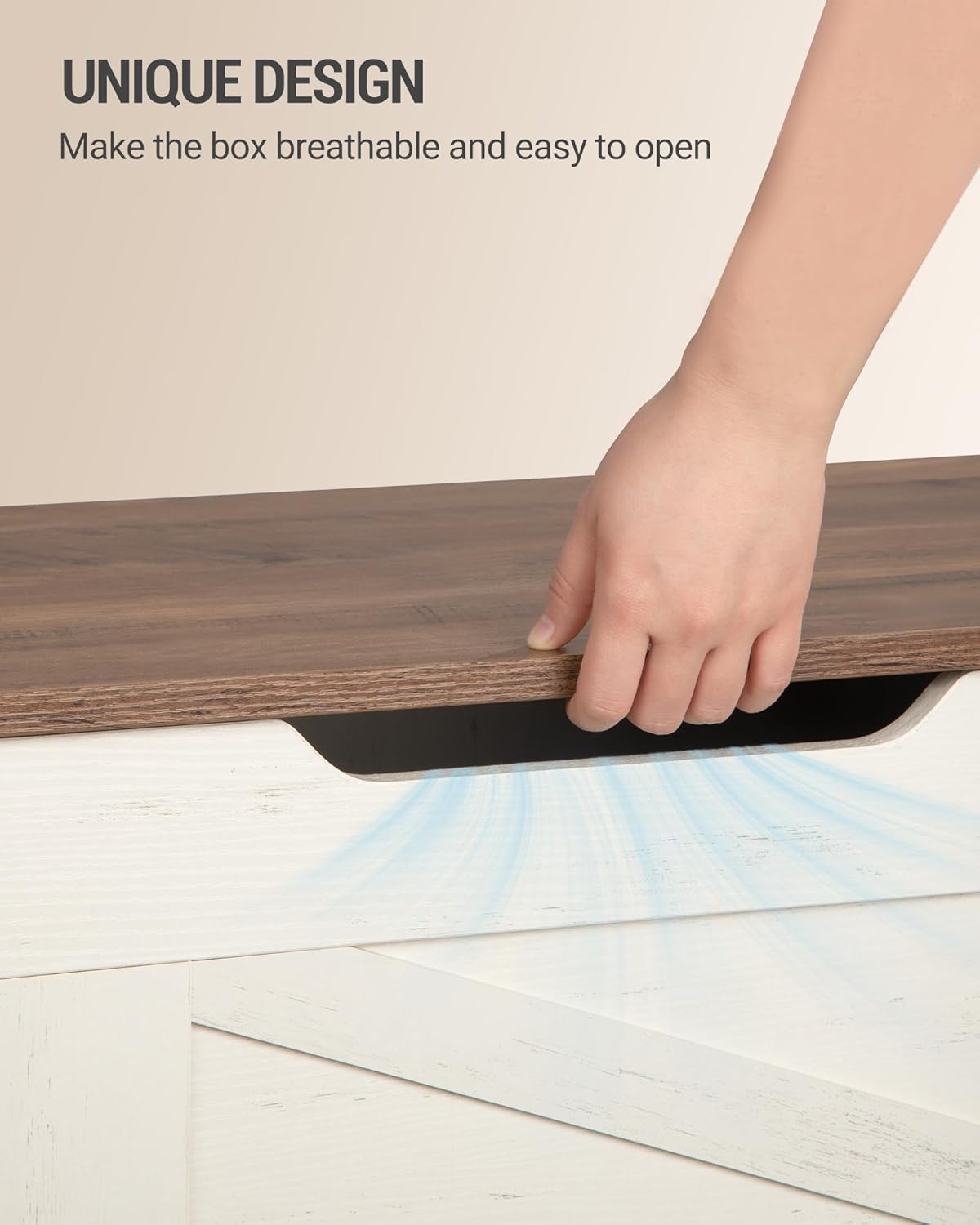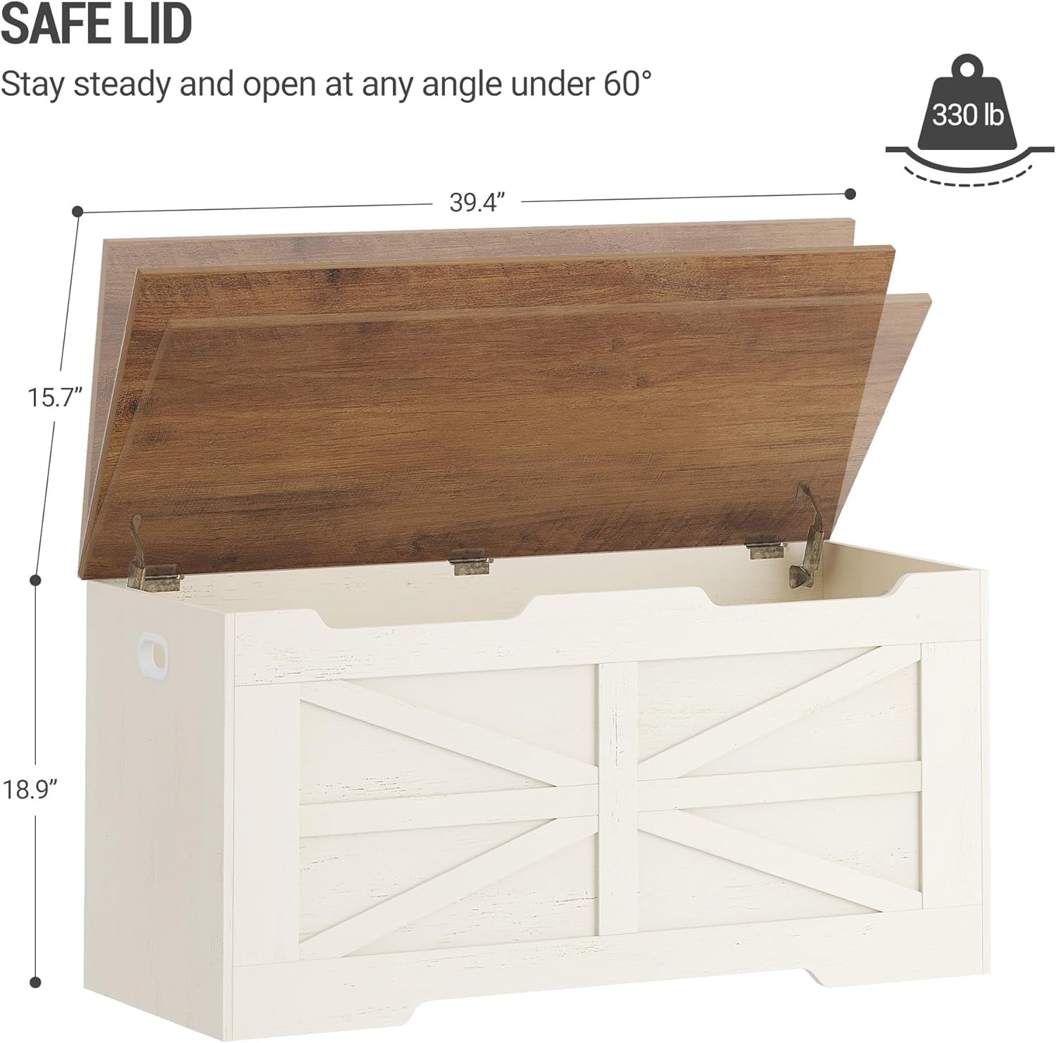 39.4" Storage Chest, Extra Large Storage Trunk with 2 Safety Hinges, Wooden Box Bench, Lift-Top Organizer Chest, Shoe Bench for Entryway, Bedroom, Living Room, White and Brown SB03414X