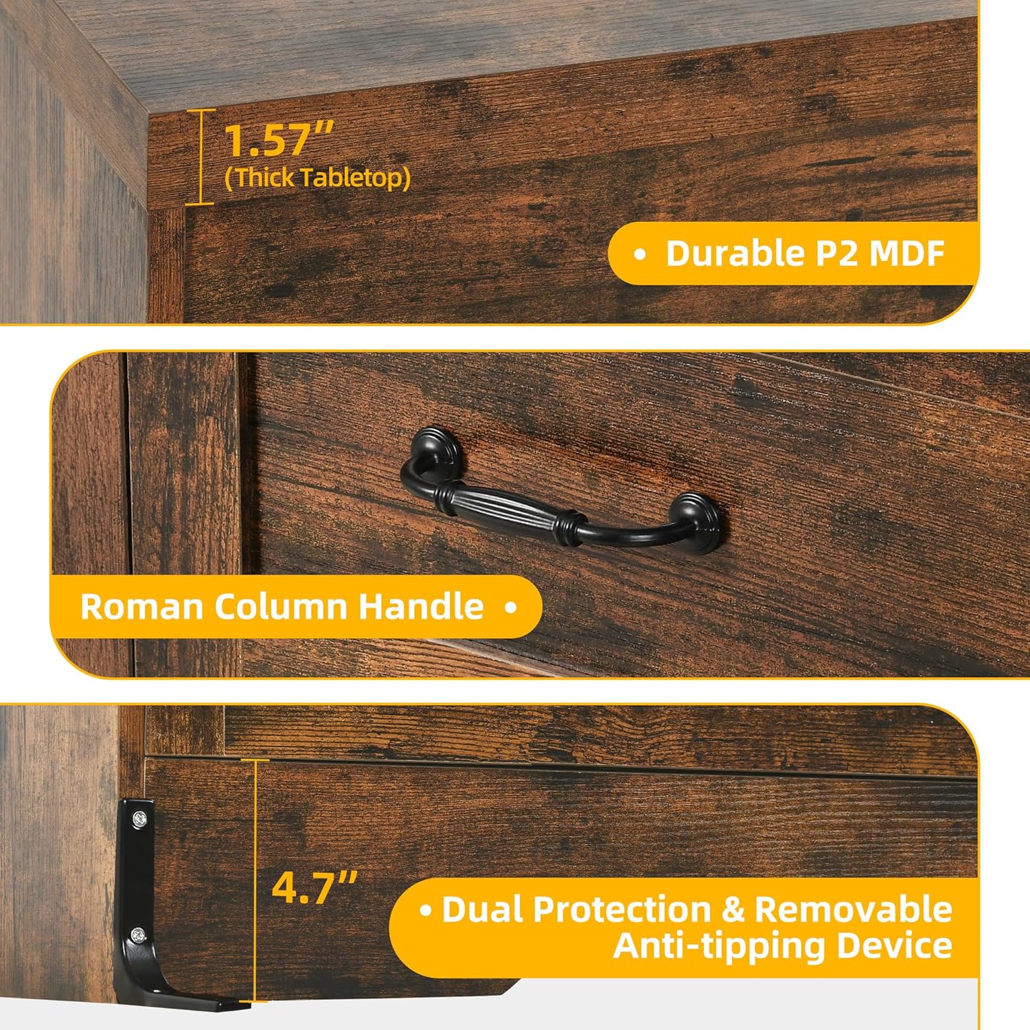 YITAHOME Rustic Brown Drawers TV Stand for 65 inches with Power Outlets -Chest of Drawers Dresser with Side Organizer Bag Entertainment Center TV Console