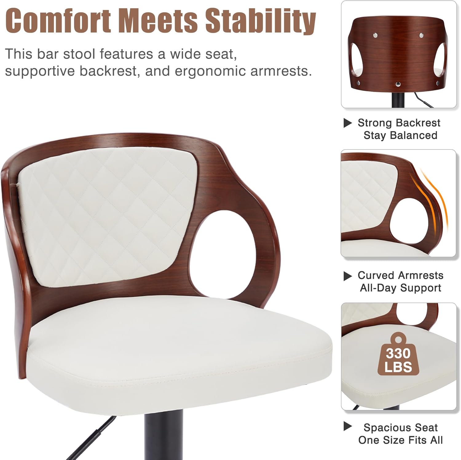 - 【Dimenssions&Load Capacity】: Barstools Overall Size: 17.1"Wx18.7"Dx33"-41.3",Seat Size: 17.1"Wx16.5"D, Seat Height Range: 24.6"-32.7". Maximum Weight Capacity up to 330lbs. Metal Base Dia: 16.1".