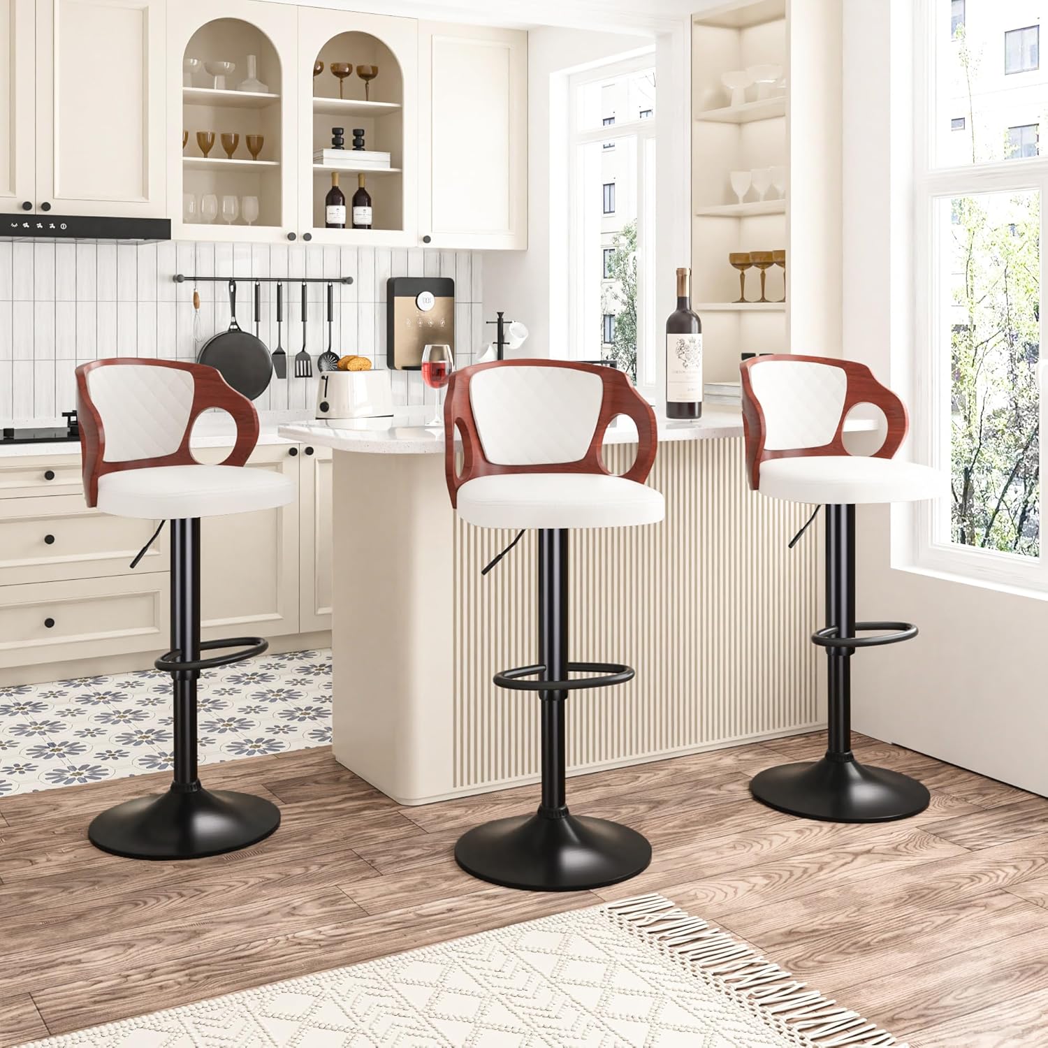 - 【Modern Style Design】: With a combination of bentwood backrest, circle arms and premium faux leather, this bar stool chairs will add a casual and unique sense of aesthetics to your designated places. Simple and chic overall style also makes it a luxury choice for home and pub. VECELO island barstool is also suitable for dining room, kitchen island, bar club, hotels and malls.