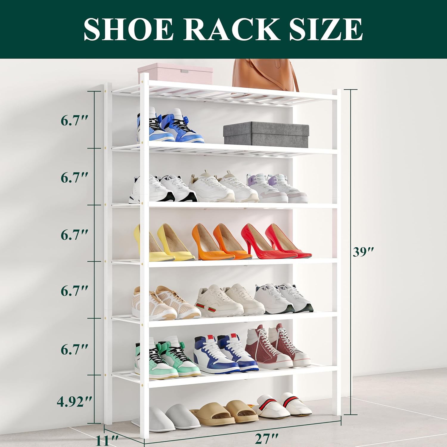 Smiry Shoe Rack, 6 Tier Bamboo Shoe Organizer, Stackable Free Standing Wooden Shoe Storage Shelf for Closet, Entryway, Front Door Entrance, White