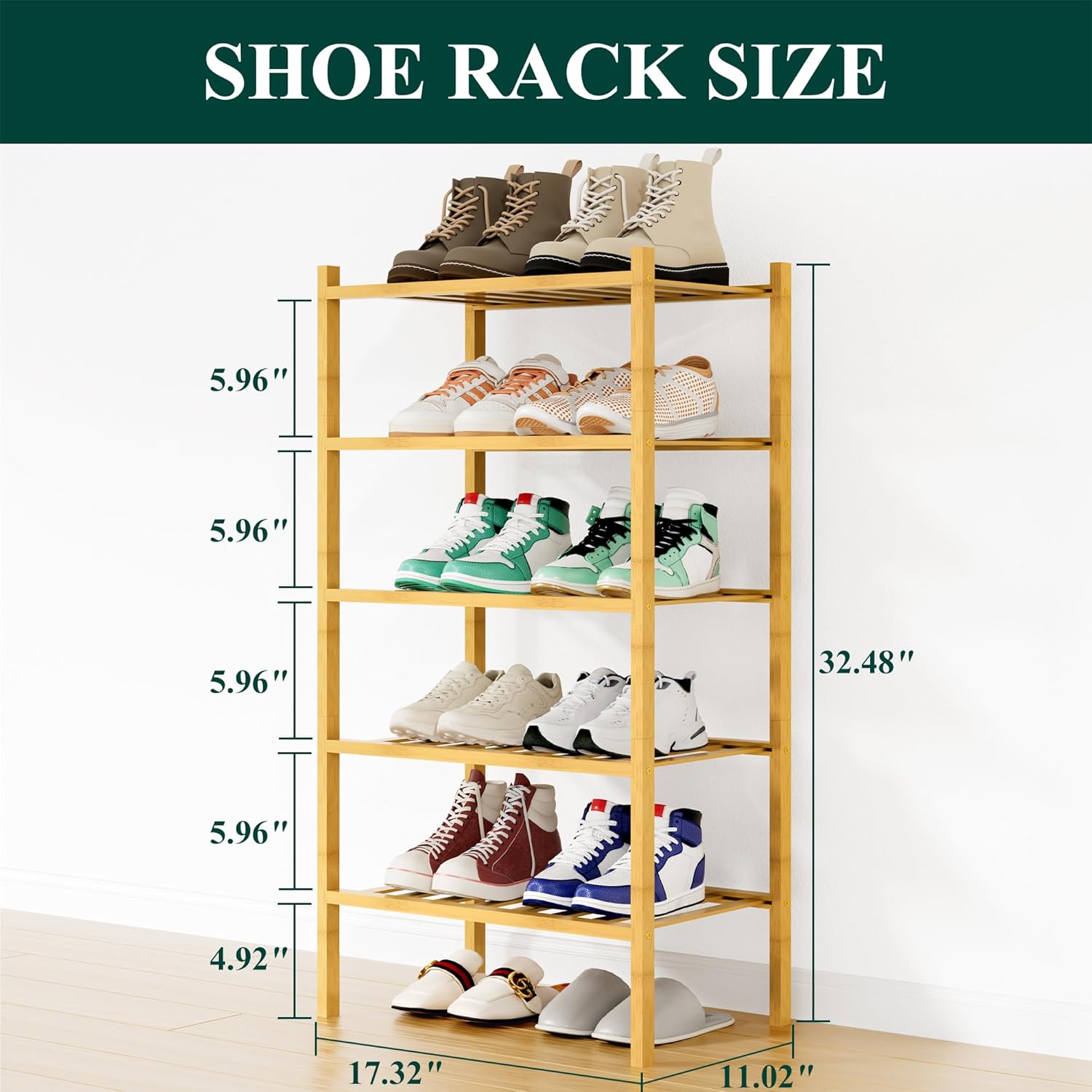 Smiry Shoe Rack, 5 Tier Small Bamboo Shoe Organizer, Stackable Free Standing Wooden Shoe Storage Shelf for Closet, Entryway, Front Door Entrance, Natural