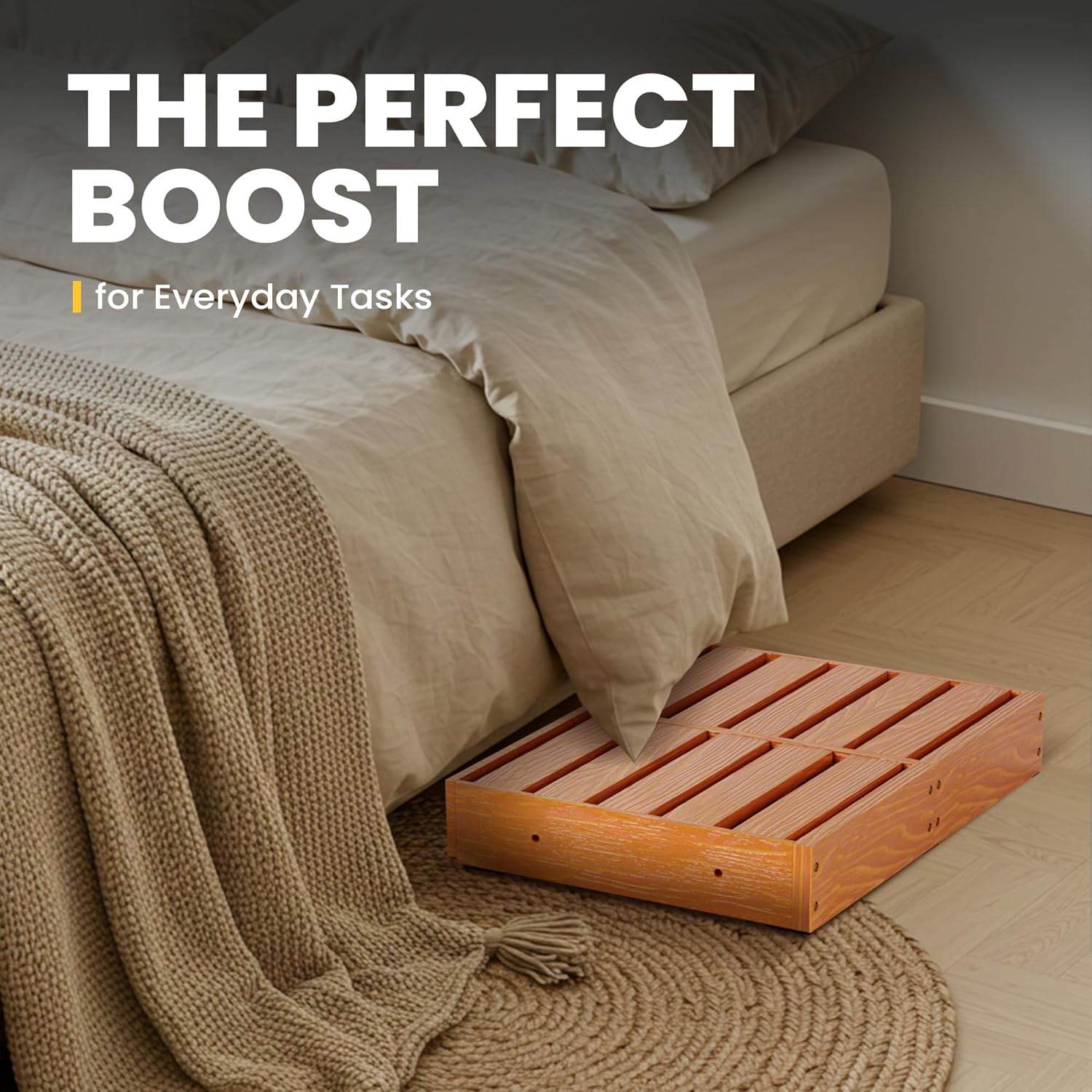 - 🛋 Compact & Space-Saving – Measuring 23.6'' x 15.9'' x 3.5'', this low step stool is easy to tuck away under a bed, beside furniture, or in closets when not in use. Its minimalist design blends seamlessly with kitchen, bedroom, bathroom, or indoor décor, while staying practical and stylish.