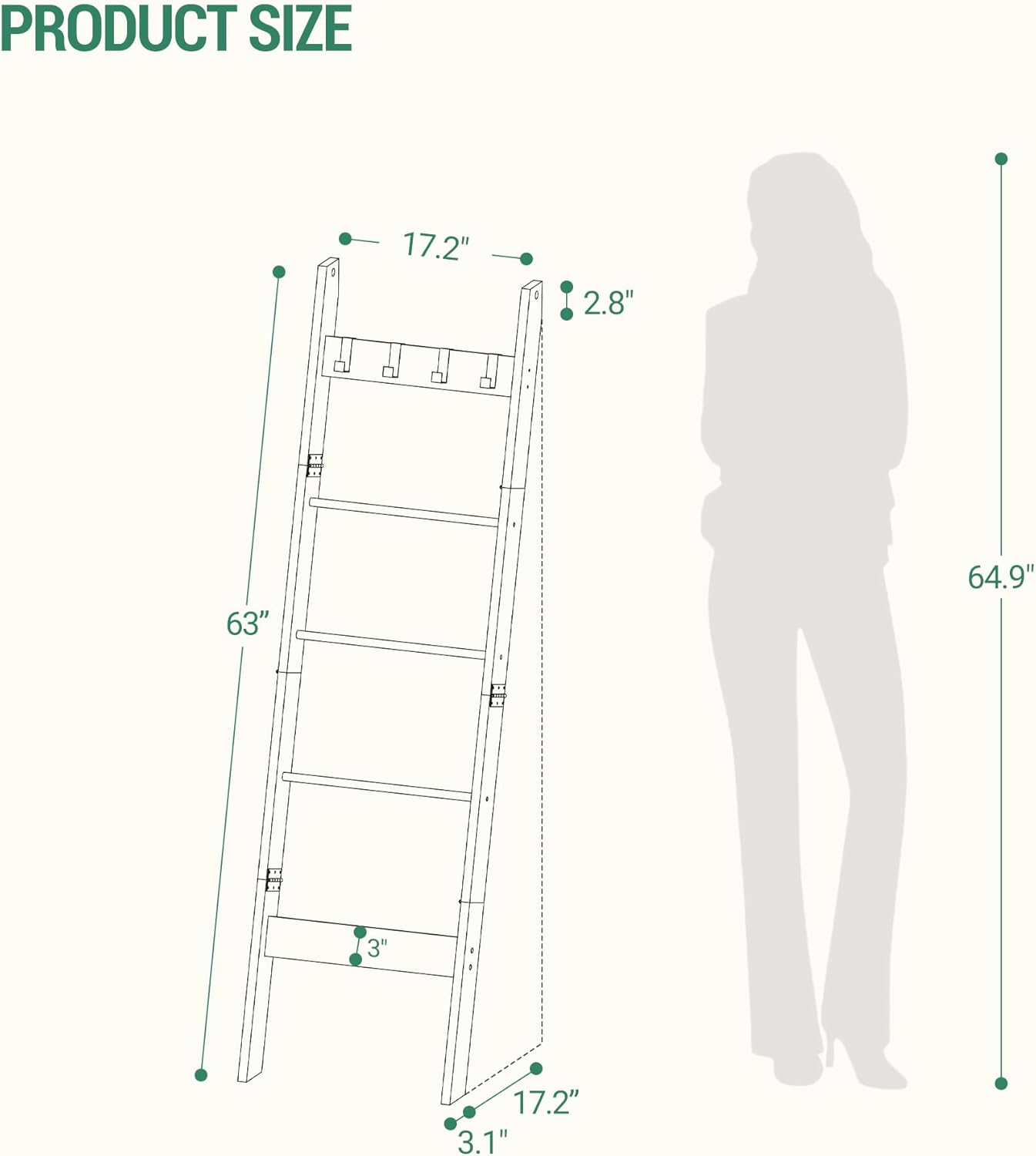 - Space Saving Decorative Ladder: A 5-tier blanket ladder, prop the towel ladder against a wall to store clothes and blankets as a catch-all rack. 4 removable hooks make it easier to place your bag keys, etc.