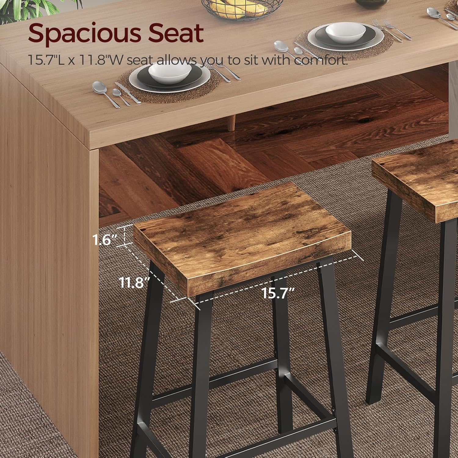 Bar Stools,Counter Height Bar Stools Set of 2, 23.7 Inch Saddle Stools with Footrest, Kitchen Stools, Industrial Style, for Dining Room, Counter, Bar, Rustic Brown and Black BAHR0801N1