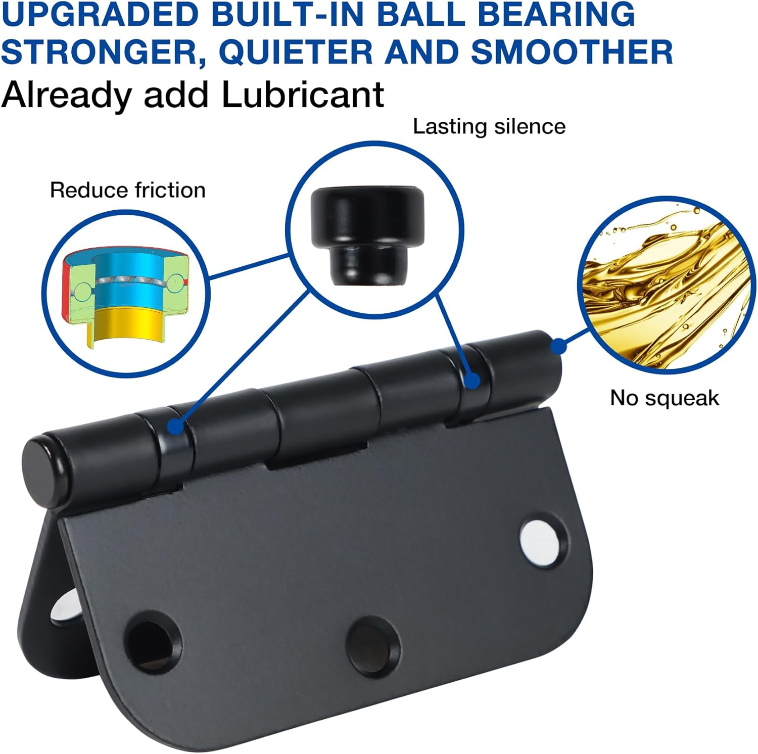 36 Pack Ball Bearing Matte Black Door Hinges 3.5 Inch 5/8" Radius Round Anti Squeak Interior 3-1/2"Flat Bifold Standard Bedroom Indoor for Doors 3 ½" House Home Hardware Decor Accessories Must Have